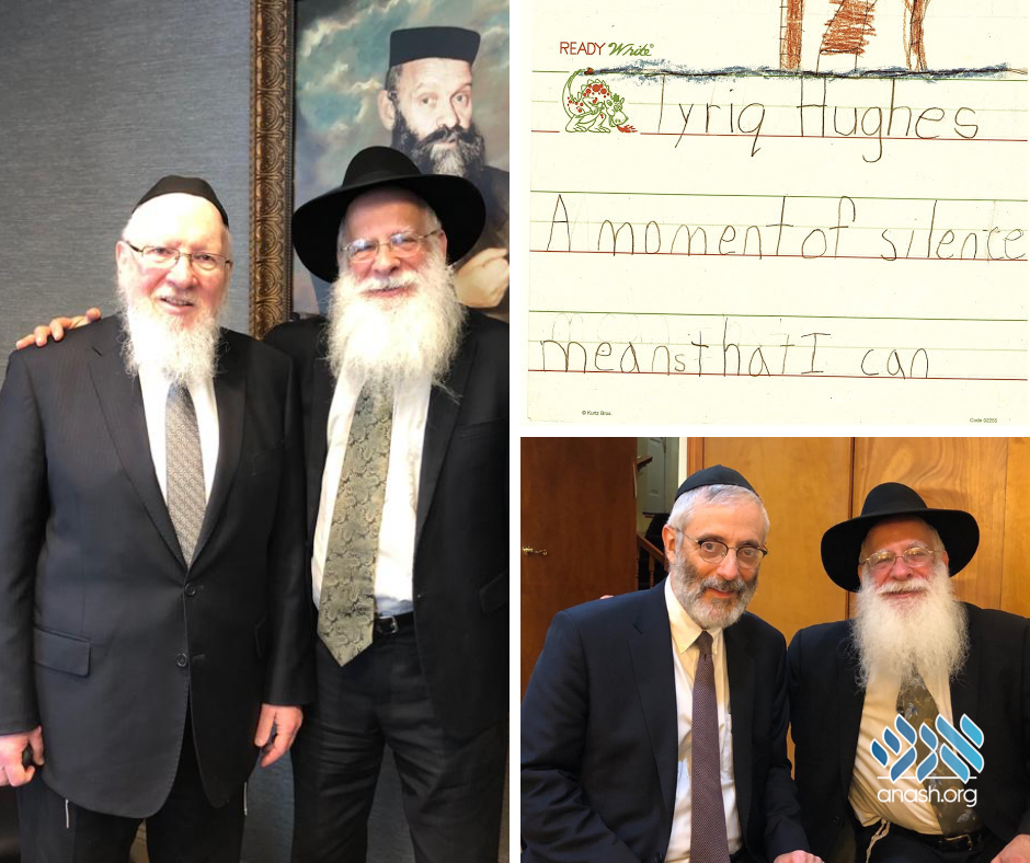 Rabbi Frank showed Rabbi Zwiebel letters that had been written by public school students whose schools are participating in the campaign. During the ensuing conversation, Rabbi Zwiebel expressed an interest in seeing how this initiative might be beneficial for frum schools.