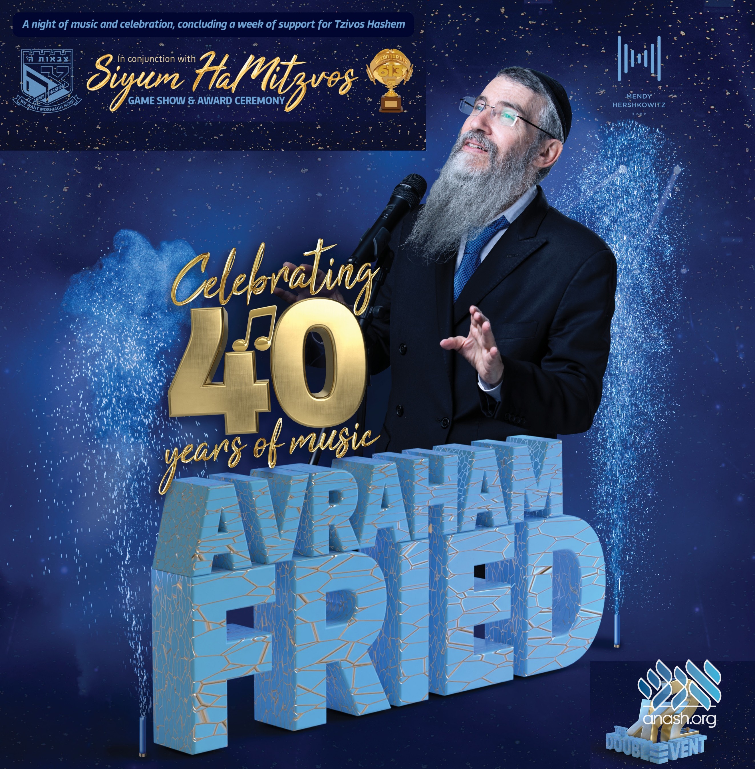 Event #1: Sunday, 24 Adar 2 | March 27 – 40 years of Avraham Fried & 40 Years of Tzivos Hashem