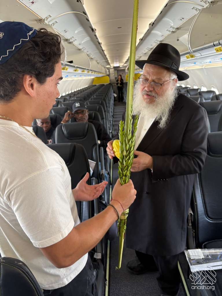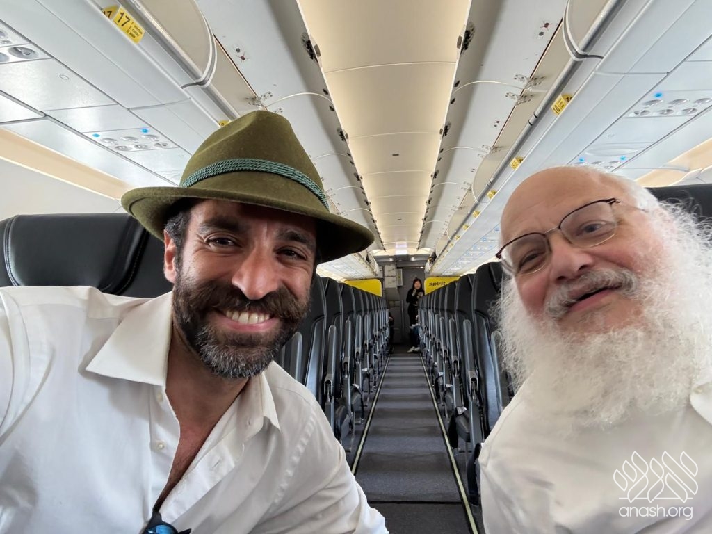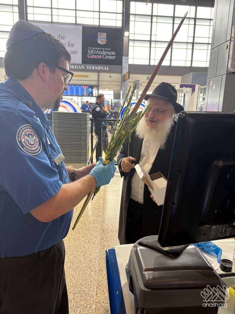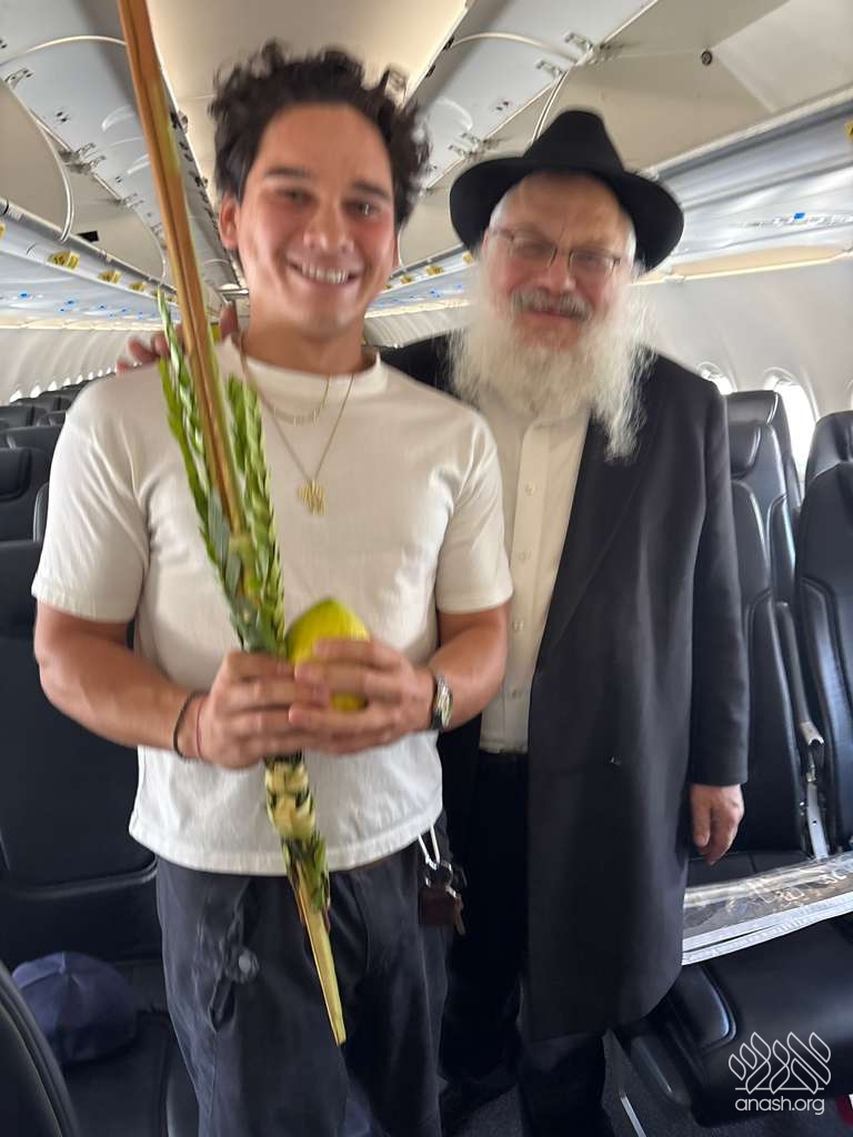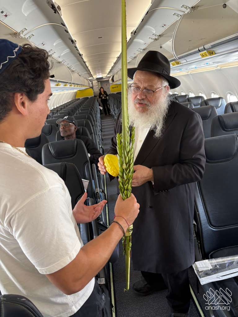 It started with a lively drive to the airport; each man being pushed out the door by their respective loved ones with urgent reminders: “Don’t miss the flight!” At security, the TSA agent stopped the rabbi. Obviously, this mysterious long object going through the scanner was suspicious. The TSA agent to their surprise said, “It’s the holiday, right?” So, the Rabbi and Amir helped the agent shake the lulav and esrog. Of course, what’s airport travel without a hiccup? Adam’s name was spelled incorrectly on his ticket, making it a close call to the gate. While waiting to board, they met two more Yidden and shook lulav and esrog with them on the plane before takeoff.