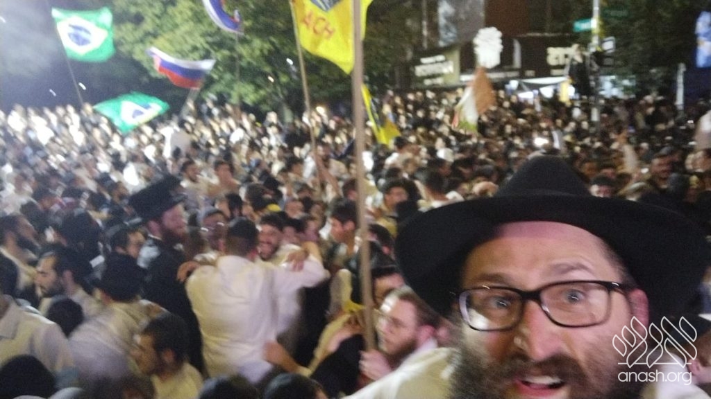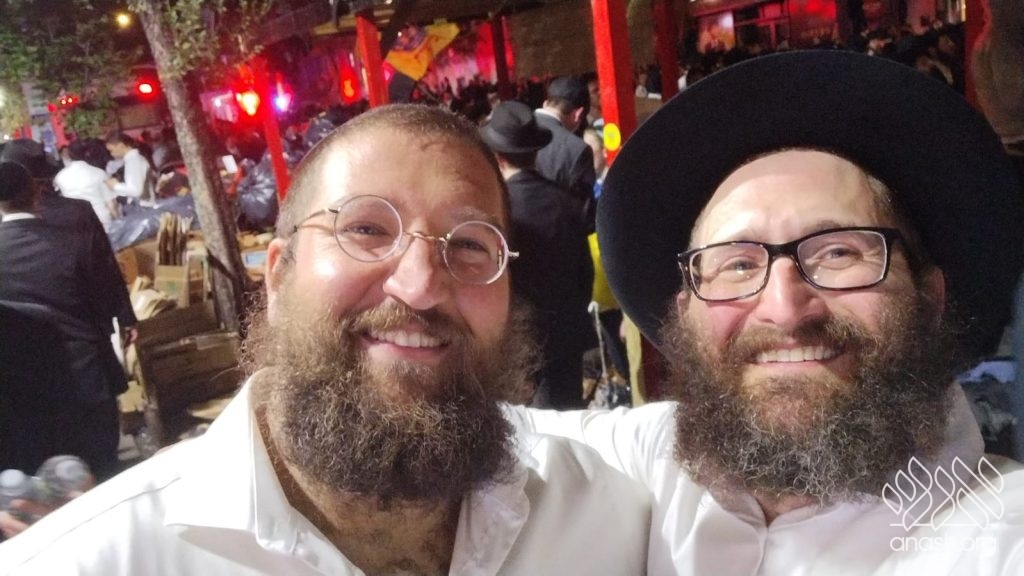 Amir mentioned the beauty of a farbrengen of the Rebbe and how he would have loved to experience one. Adam shared that one of his main desires was to dance in the streets of Crown Heights during Simchas Beis Hashoeva. Adam pulled up aerial footage of the event, and that was it, a fire was ignited in Amir that he refused to let fizzle out.