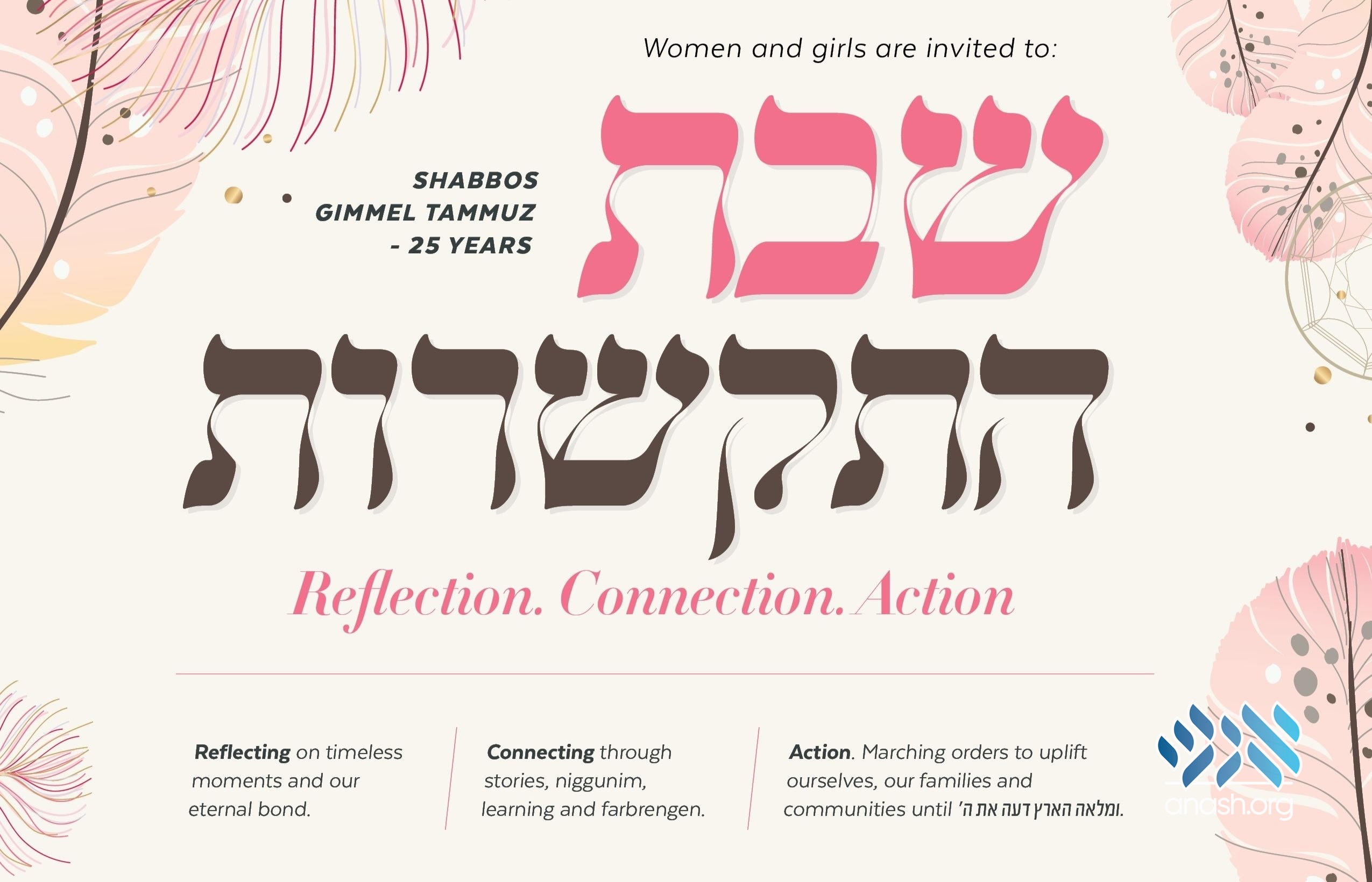 We are excited to share that a group of women from around the world, in conjunction with Vaad Or Vechom Hahiskashrus, are working tirelessly to create a special Shabbos experience for women and girls of all ages. This is an opportunity to spend the 24+ hours of Gimmel Tammuz enveloped in a cocoon of warmth, Farbrenging, learning and connecting with fellow Chassidim.