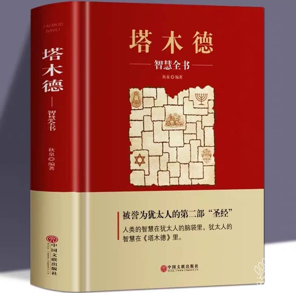 Cover of the Chinese edition titled “Talmud Bavli – The Book of Wisdom”, compiled by Qiuquan and published by the China Federation of Literary and Art Circles Press. The text on the cover reads: “It is hailed as the second ‘Bible’ of the Jewish people. Human wisdom resides in the minds of Jews, and Jewish wisdom is found in the Talmud.”