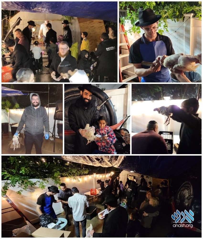Anash families of Brownsville gathered late Motzei Shabbos to perform Kaparos bringing the ancient custom back to the area after 8 decades.