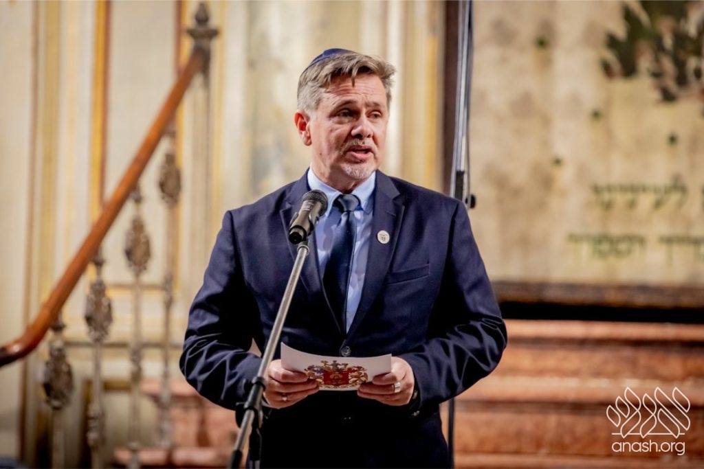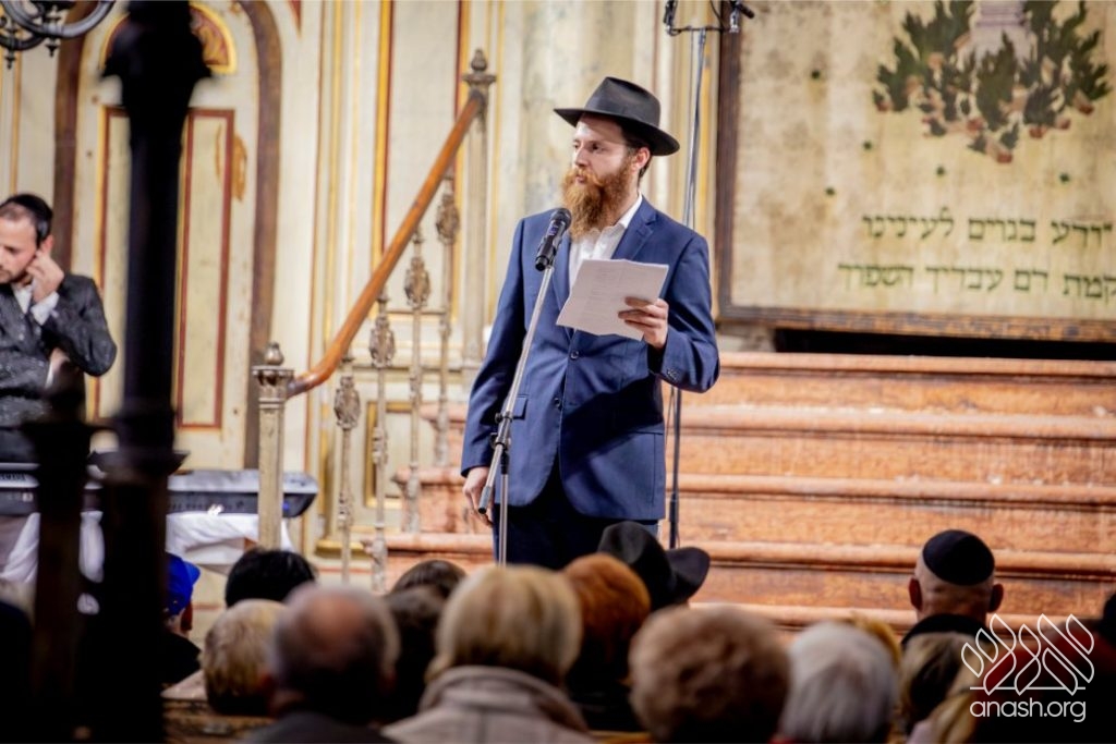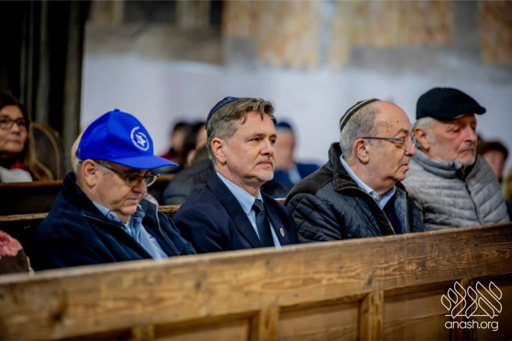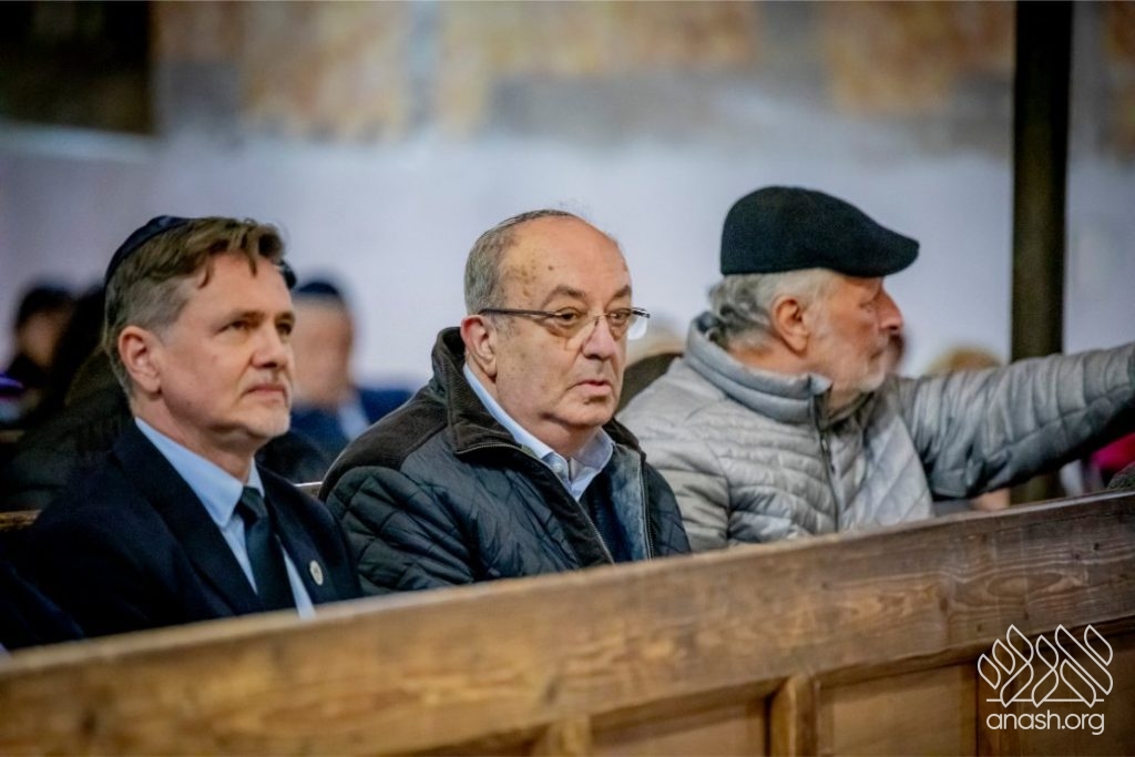 A special choir of chazzonim, under the direction of chazzan Yechezkel (Chezki) Zorger, led heartfelt selichos, filling the ancient sanctuary with stirring melodies. Among the distinguished guests was the newly elected mayor, Mr. József Tóth-Szántai, who honored the occasion with his presence.