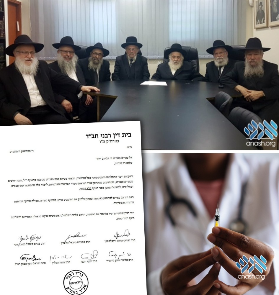 For the past year and a half, since the outbreak of the coronavirus, Beis Din Rabbonei Chabad in Eretz Yisroel, has been a leading voice in Eretz Yisroel, issuing calls to follow health regulations and guidance from doctors and the Israeli Health Ministry.
