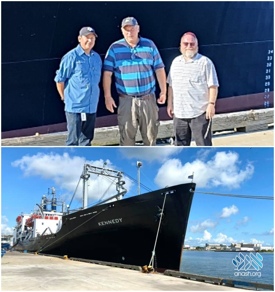 After arriving at the ship, then docked in Galveston, and delivering the food and utensils, Rabbi Lazaroff tweeted, “Let’s just say mission accomplished.”