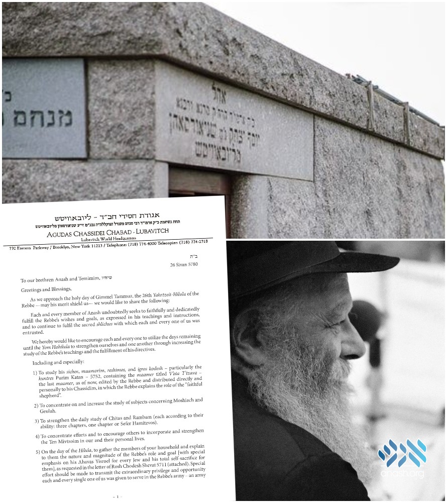 Aguch Issues Letter Addressing Gimmel Tammuz, Ohel