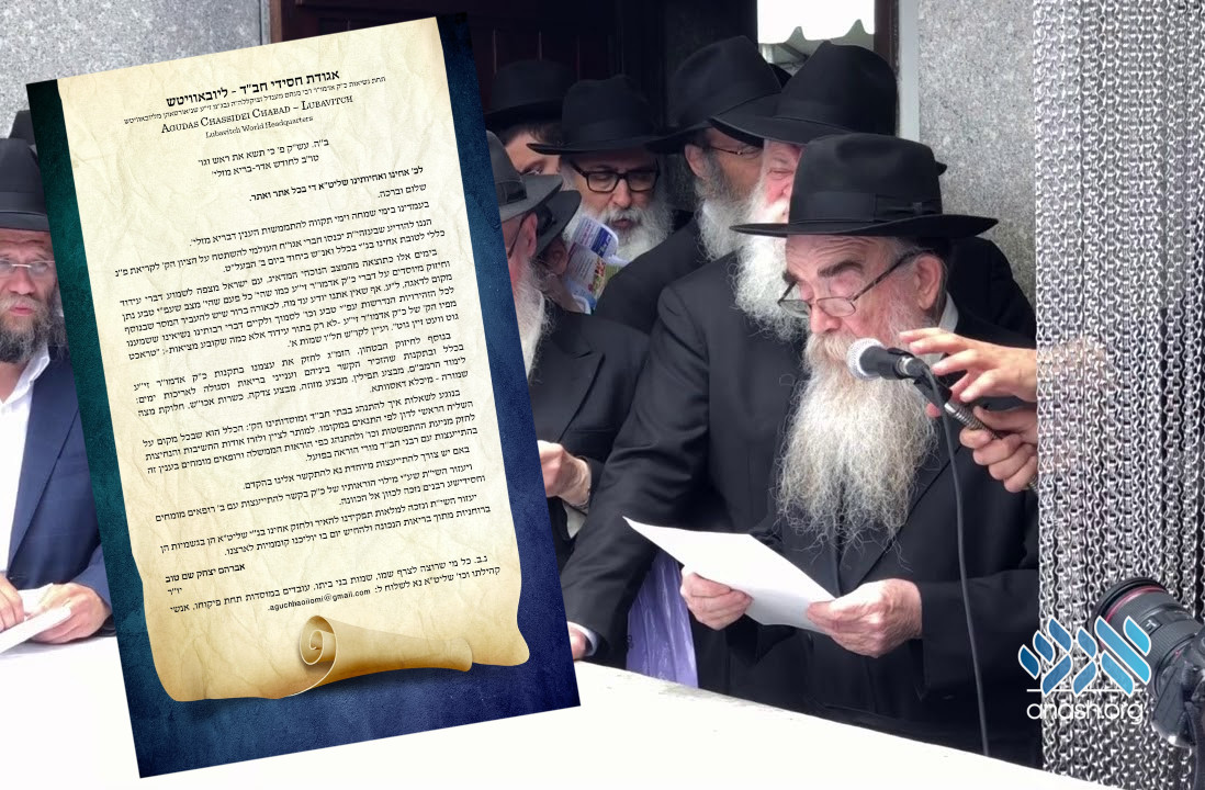 Agudas Chassidei Chabad released a statement, signed by yoshev rosh Rabbi Avraham Shemtov, addressing the current situation and informing of a pan kloli to be read by the Ohel on Monday.