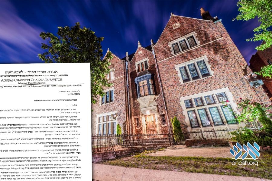 Aguch Releases Letter to Anash Ahead of Yud Alef Nissan