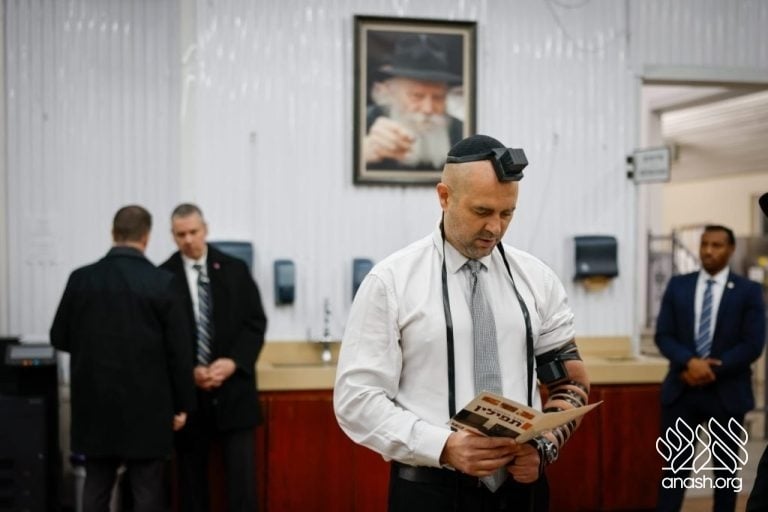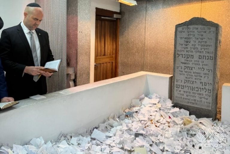 At the Ohel he put on tefillin, recited Tehillim, and davened l’iluy nishmas Israel’s fallen and heroes, for the return of Ran Guaily, whose body is still being held in Gaza, for the safety of all Jews in Eretz Yisroel and around the world, and for global unity.