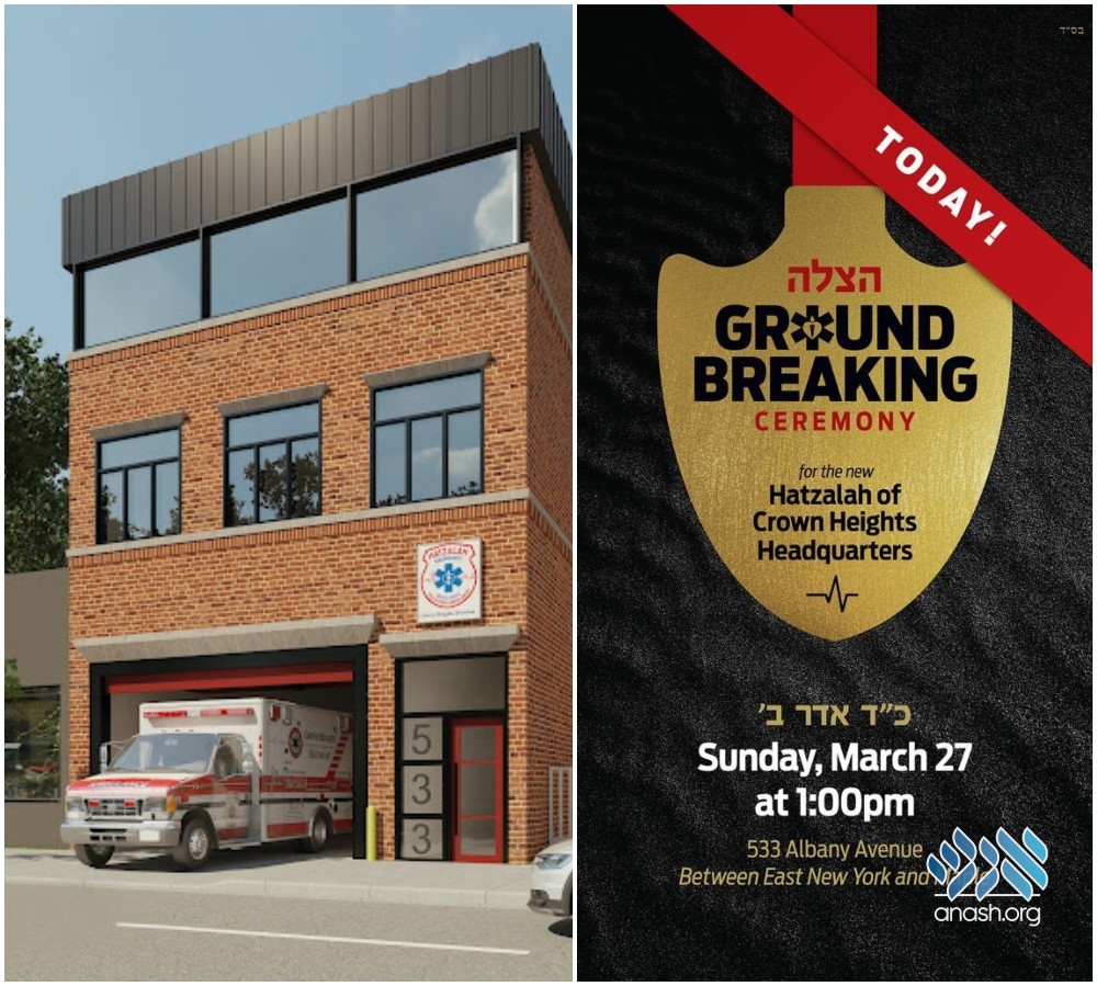 Today, 24 Adar Beis / March 27, the entire community is invited to attend the groundbreaking ceremony of Hatzalah’s new home in front of the new building location at 533 Albany Avenue.