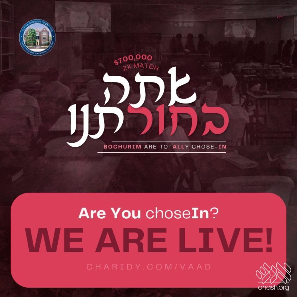 When it comes to supporting these bochurim, our bochurim, let’s be totally in. Totally choseIn.