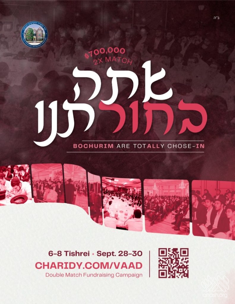 In Tishrei, it all multiplies. Thousands of bochurim take part in Vaad programs, welcomed through Hachnosas Orchim and cared for b’gashmiyus u’bruchniyus, every need met.