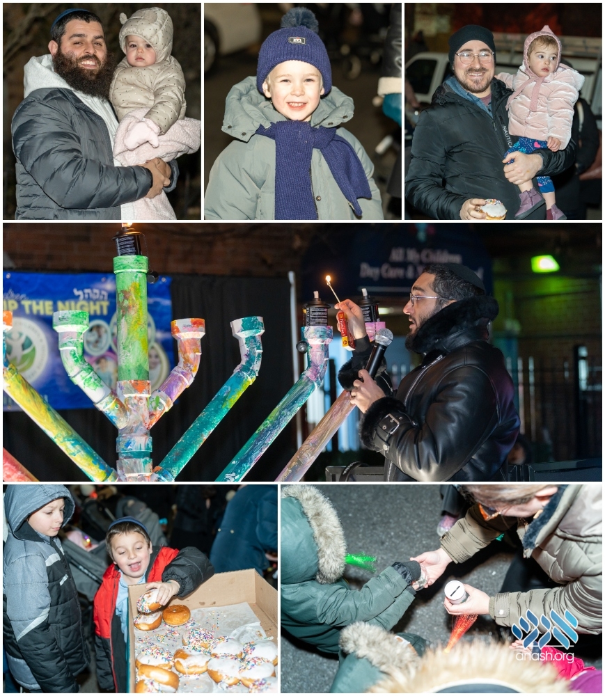 The crowd then enjoyed festive Chanukah Music by DJ Yossi and delicious donuts. The children especially enjoyed the night with all the fun and bright light-up toys.