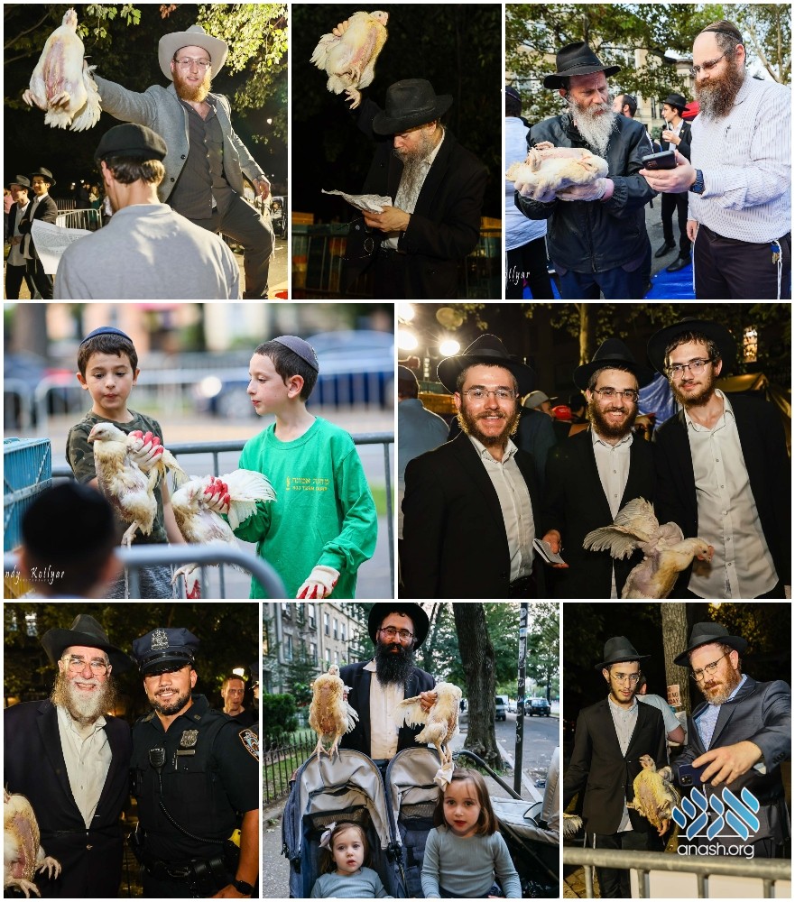 Locals and guests performed the custom of Kaparos at numerous locations in Crown Heights late Tuesday night and early Wednesday morning, Erev Yom Kippur 5782.