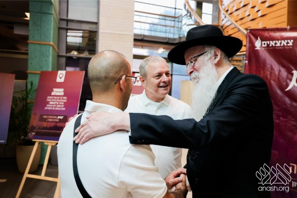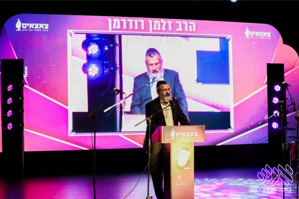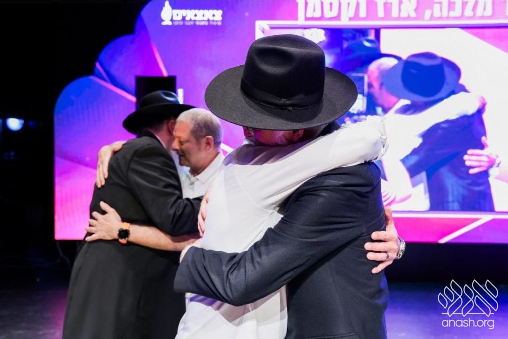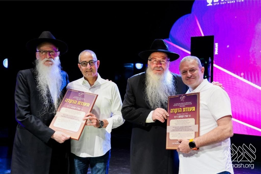 Rabbi Moshe Tzvi Halperin presented a review of the Association’s expanding activities over the past year. During his remarks, he invited two individuals whose contributions to the Association’s growth stood out in particular – Mr. Erez Waxman, a biological descendant, and Mr. Amir Malka, a spiritual descendant. The audience responded with enthusiastic applause, and the excitement in the hall reached its peak as the two were presented with certificates of appreciation.