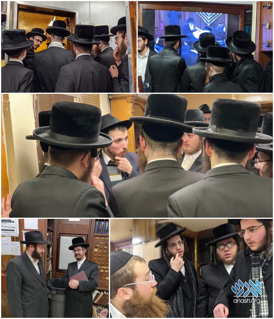 Groups of chassidim from Boro Park who observe Nittel Nacht on January 6th chose to utilize Wednesday night to visit 770 Eastern Parkway, touring the shul and hearing about its history.