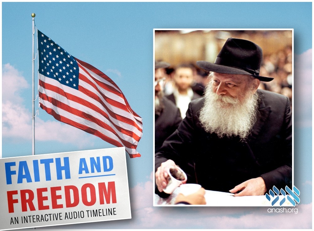 In honor of the 80th year since the arrival of the Rebbe and Rebbetzin to the USA on Chof Ches Sivan, Ashreinu.app presents ‘Faith and Freedom,’ an interactive audio timeline featuring snippets of the Rebbe’s talks on American issues.