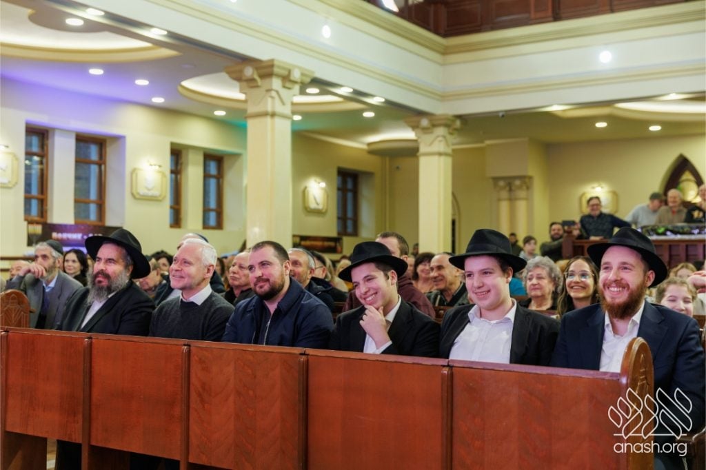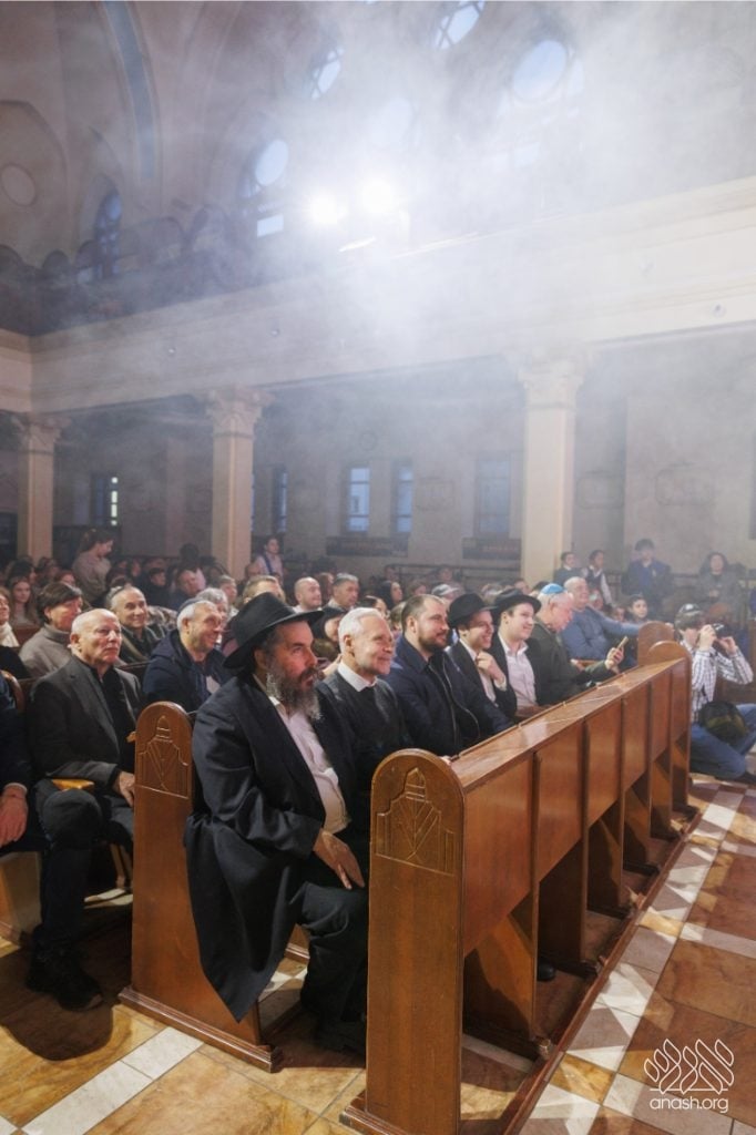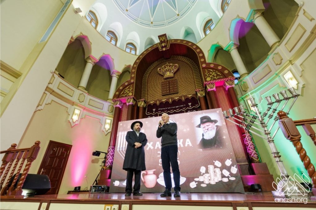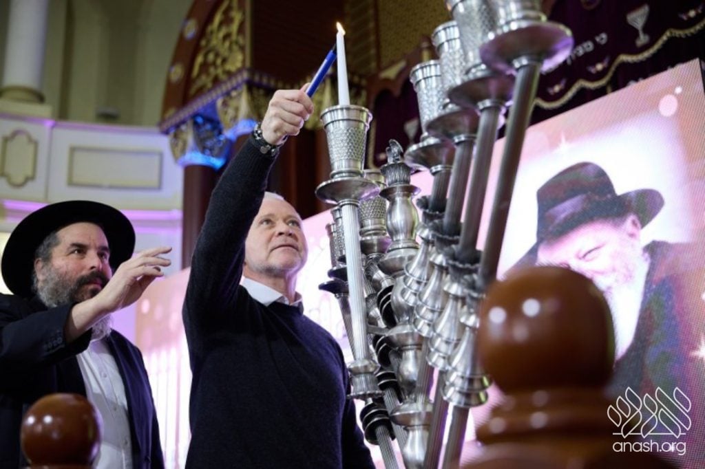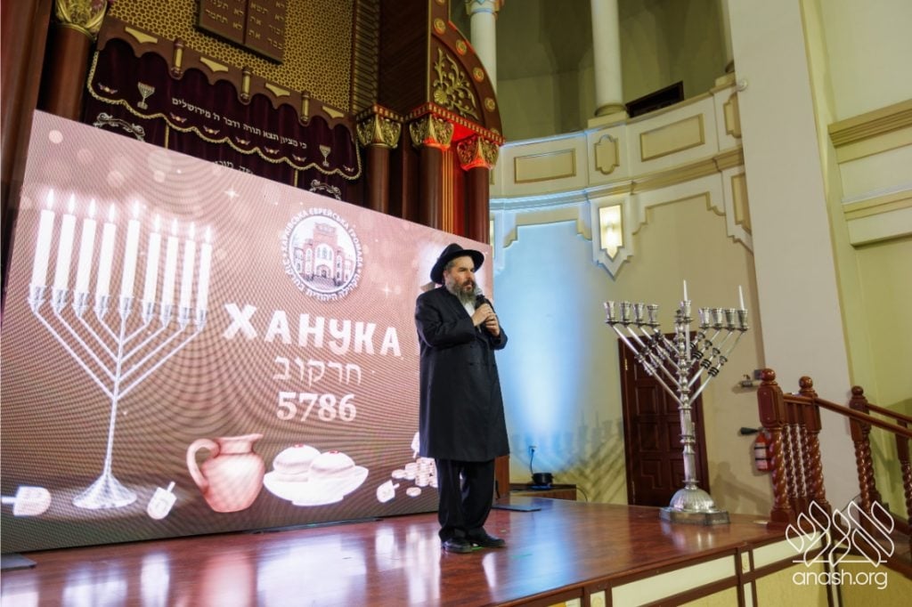 At the first Chanukah lighting in the shul on Sunday, with the news of the terrible tragedy in Sydney, Rabbi Moshe Moskovitz spoke of the need to add light and good deeds to banish evil and darkness. The hundreds of participants joined in Shma Yisrael in prayer for the martyrs and those wounded in the attack. Igor Terechov, the mayor of Kharkiv, was proud and grateful that the Chanukah traditions can be celebrated today in the city.