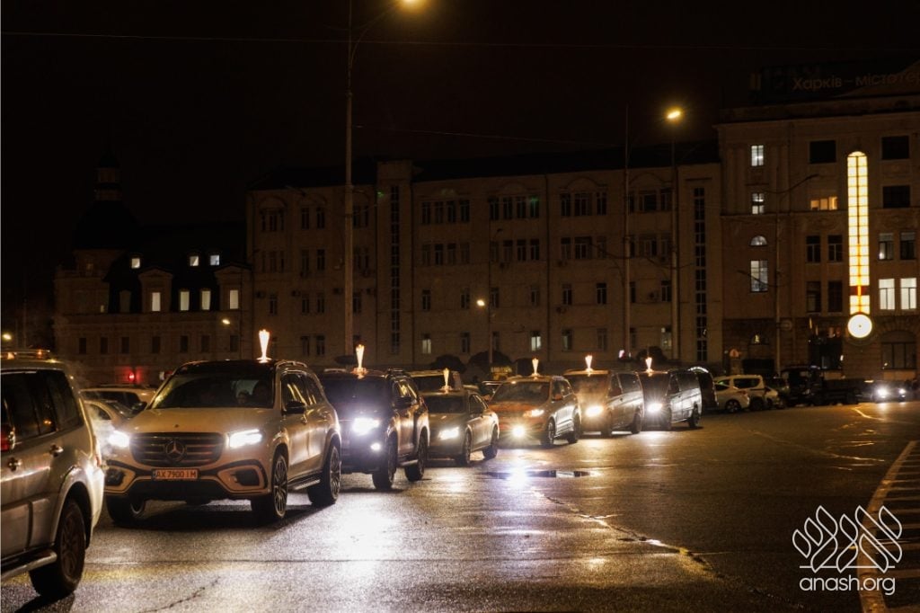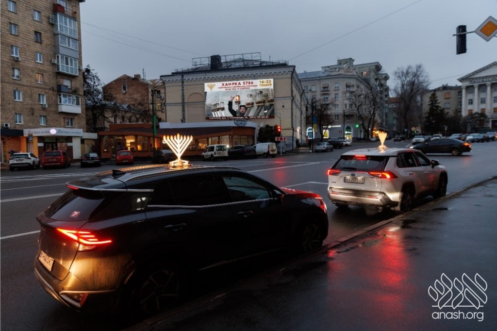 Despite the ongoing war with Russia, Kharkiv in Ukraine still held a menorah parade, with dozens of cars parading through the city with menorahs on the roof. Billboards with the Chanukah message and ten large menorahs in the streets, subway, and shopping centers lit up the city on the frontline for its fourth Chanukah at war.