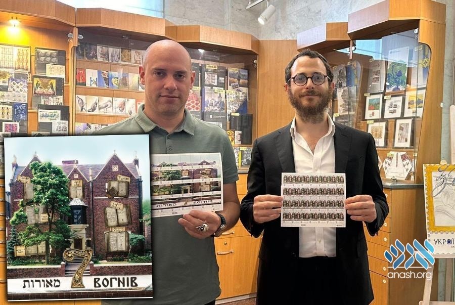 In connection with Gimmel Tammuz, the Ukrainian Postal Service issued a special stamp in honor of the Rebbe and as a tribute to Chabad’s activities in Ukraine. The stamp shows 770 and seforim of the Rebbeim.