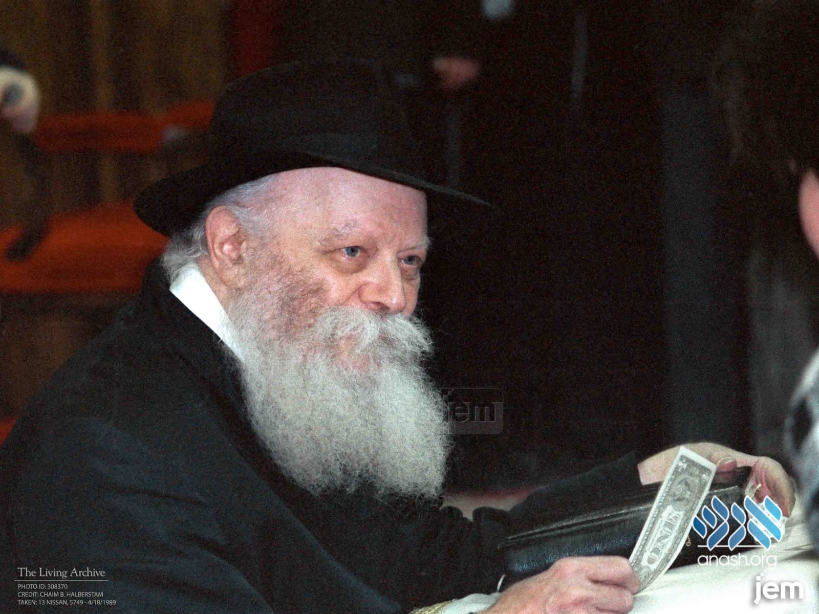 At the conclusion of the 19 Kislev 5748 (1987) farbrengen, Harav She’ar Yashuv Cohen, Chief Rabbi of Chaifa, approached the Rebbe to receive a dollar.