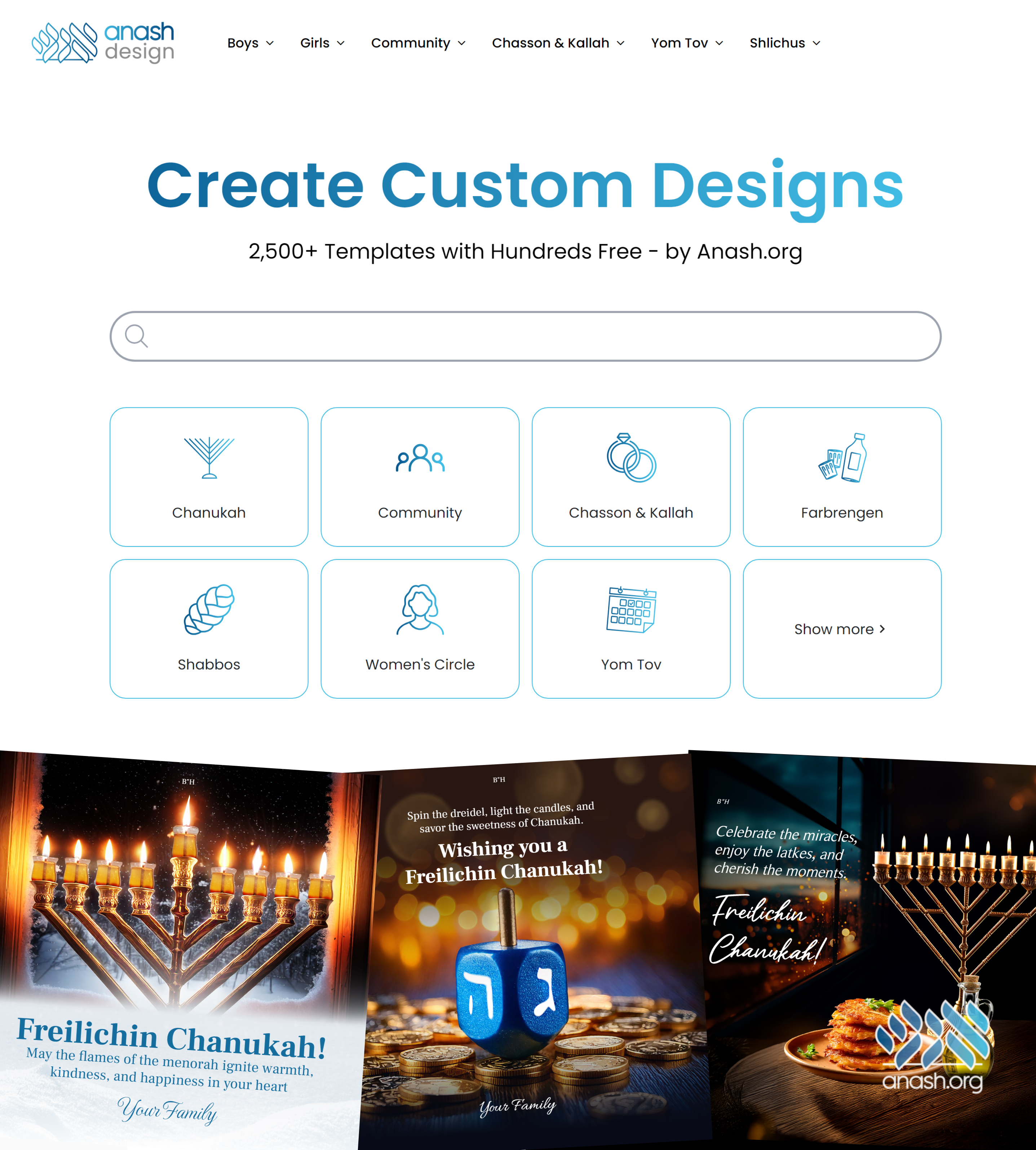This Chanukah, Anash Design has everything you need to share the joy and light of Chanukah. From beautifully designed greeting cards to powerful new design features, this platform continues to empower the Anash community with professional, family-friendly design tools.