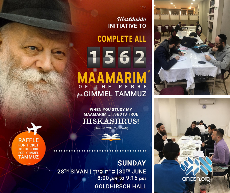Anash communities worldwide are collaborating in an effort to have all 1,562 of the Rebbe’s maamarim learned before Gimmel Tammuz.