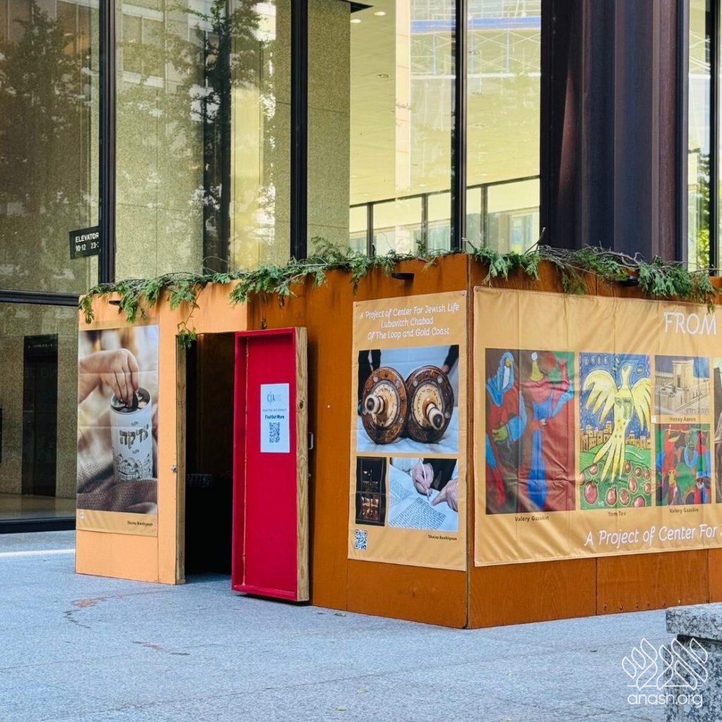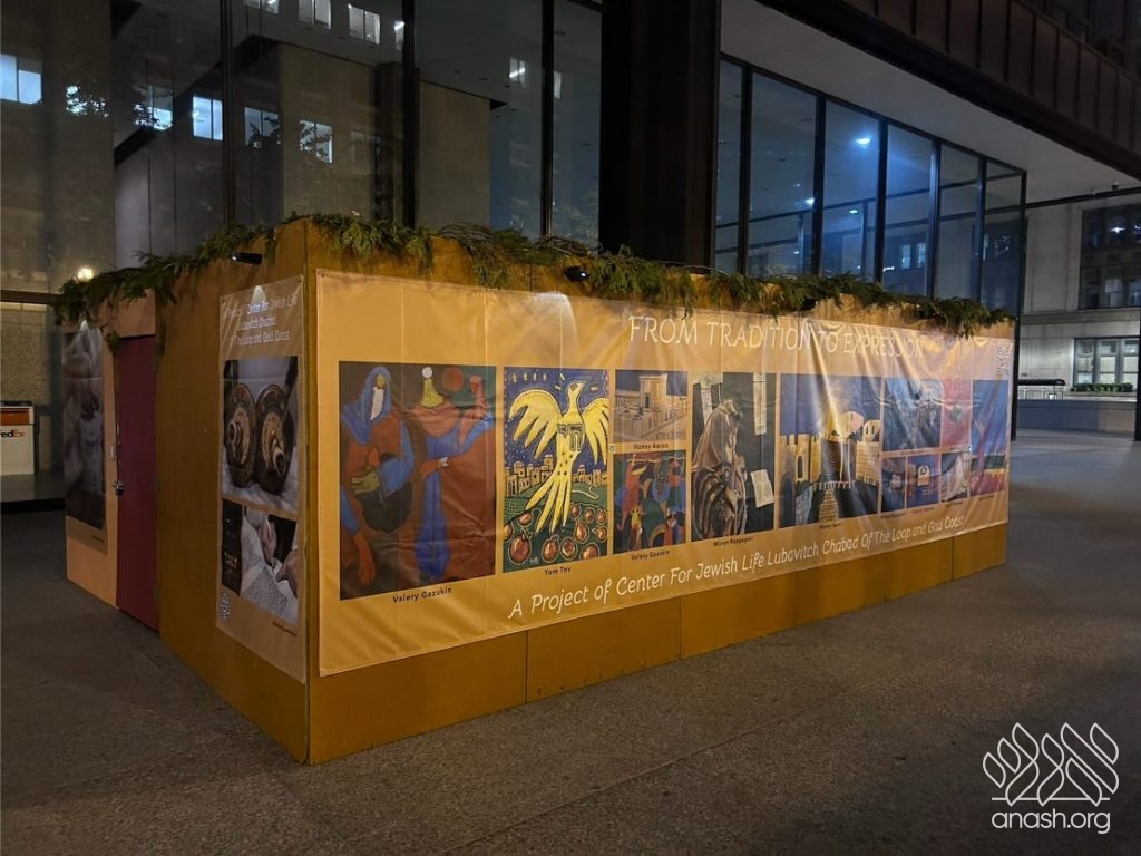 Jewish art exhibit highlights traditional and contemporary art at Chabad of the Loop sukkah in Downtown Chicago.
