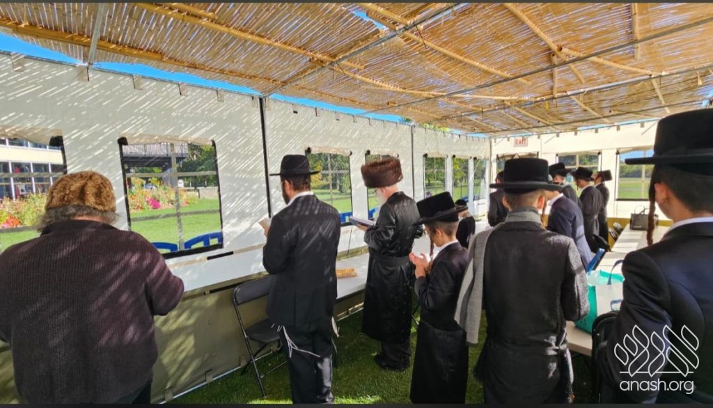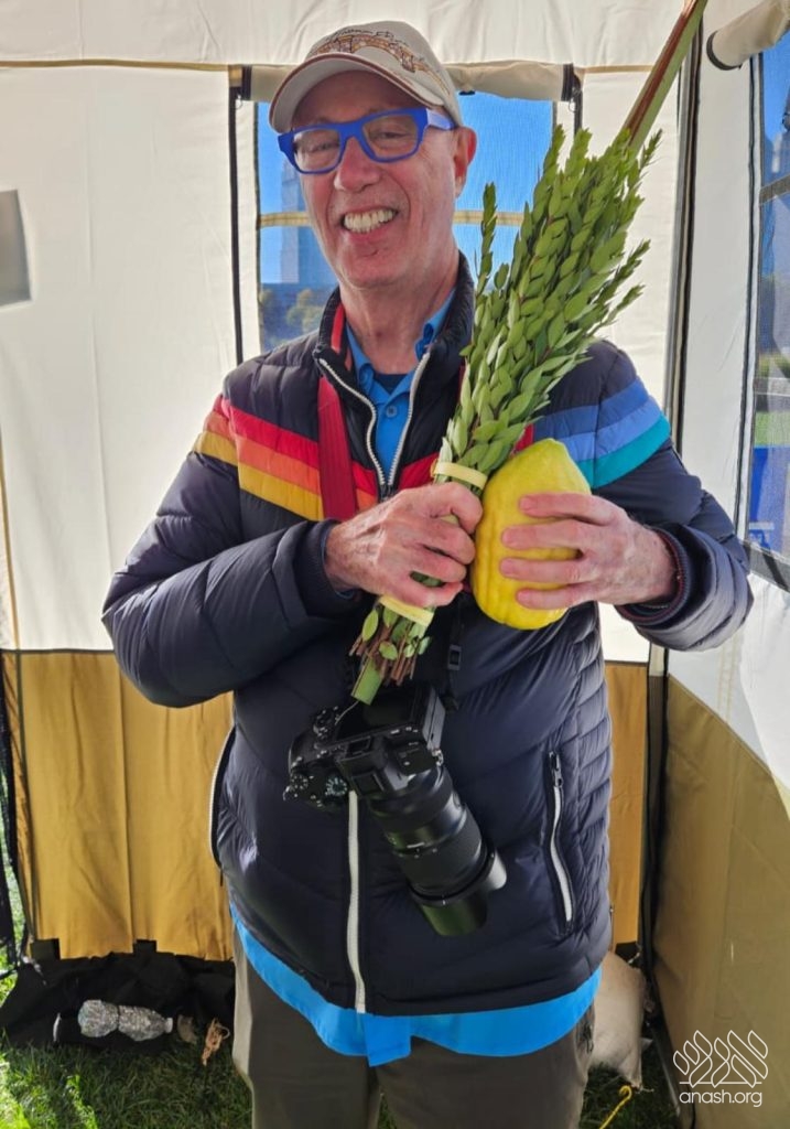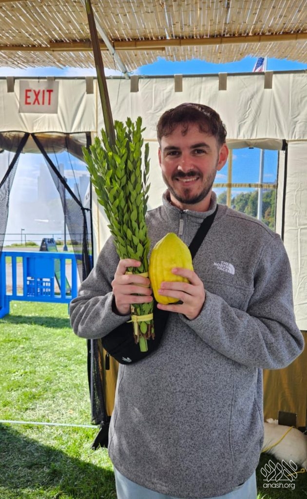 Dozens shook the Daled Minim at the sukkah at Niagara Falls, organized by shliach Rabbi Yehuda Lorber.
