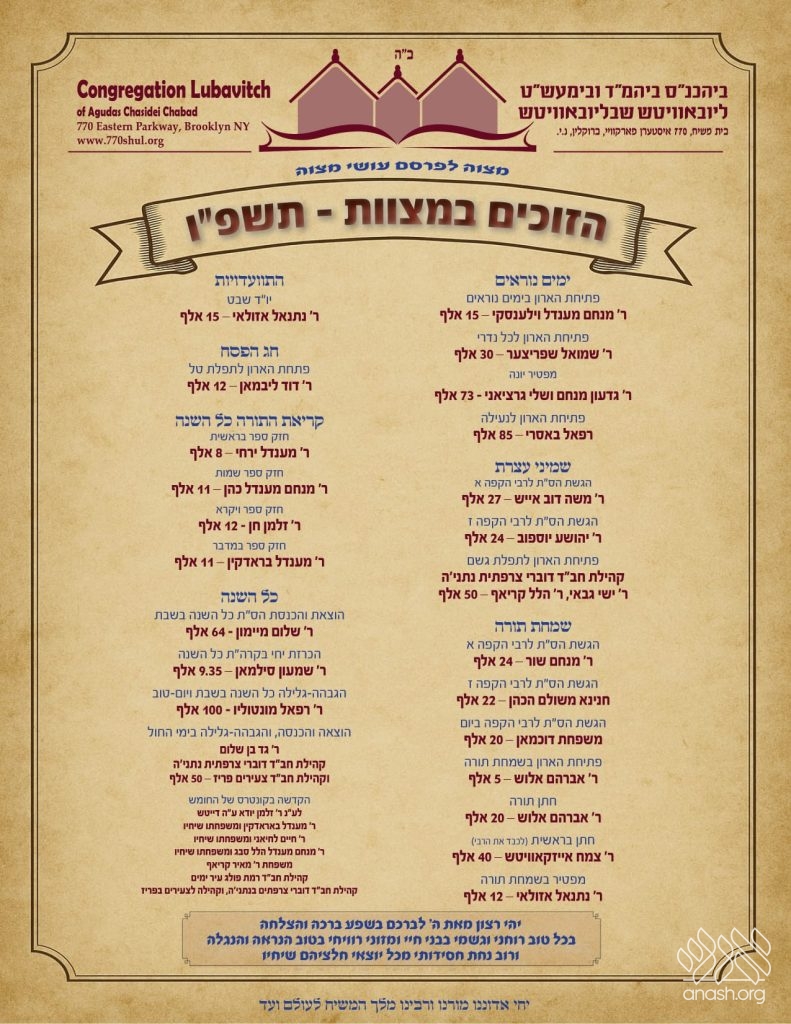 The annual ‘Mechiras Hamitzvos’ was held on Shabbos Bereishis in 770, with next year’s Maftir Yonah selling for $73k.