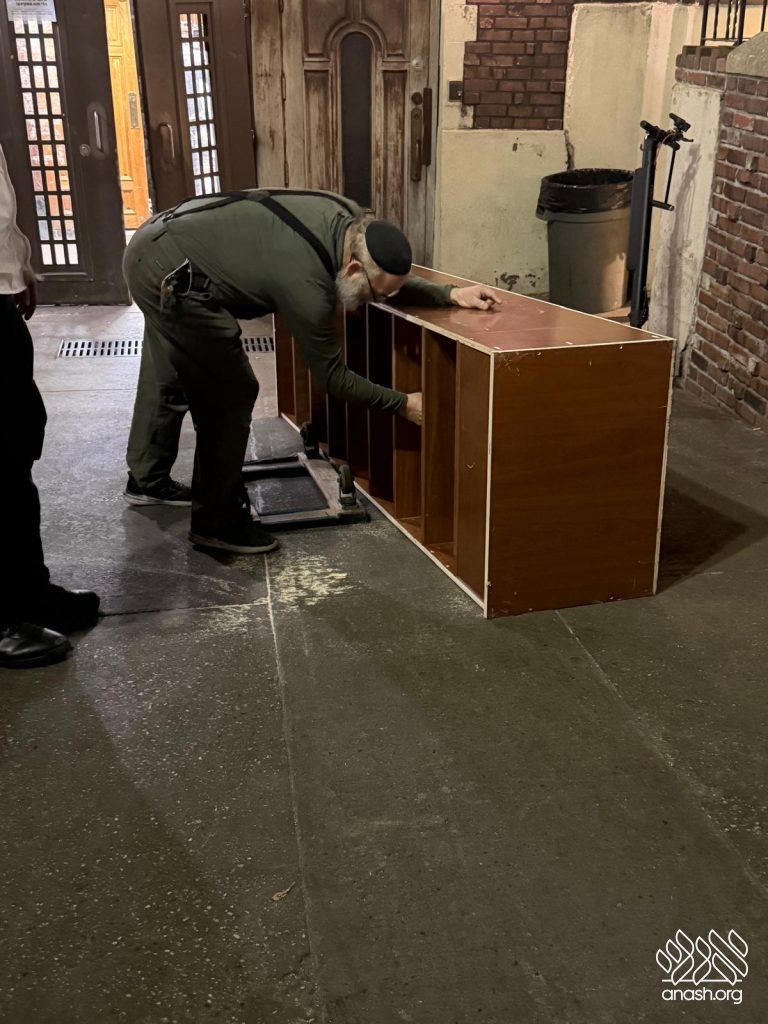 The Likutei Sichos bookcases in the back of 770 that were built in 5747 are now being replaced with new ones.