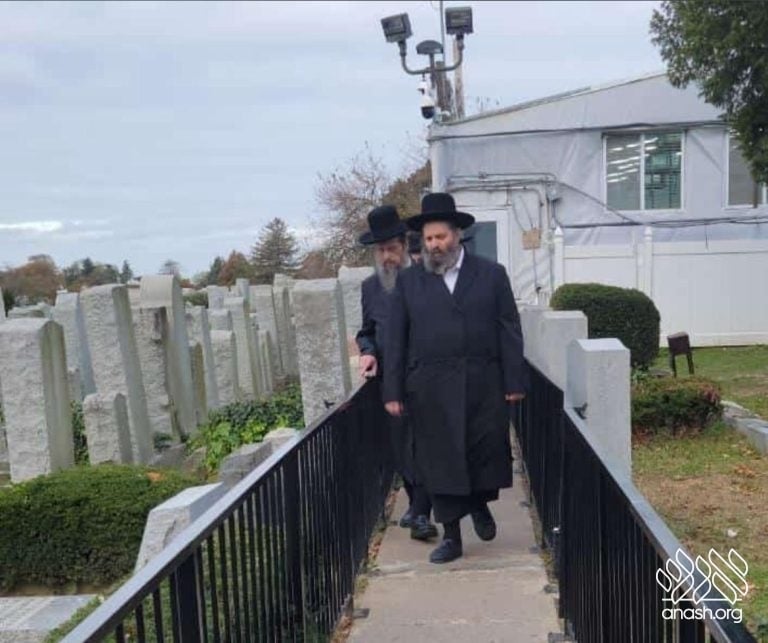 Harav Shlomo Tzvi Alter, son of the Gerrer Rebbe, visited the Ohel on Wednesday morning to daven. On his way out, he was gifted a set of the new Tanya HaShalem by Chabad activist Reb Shmuly Butler.