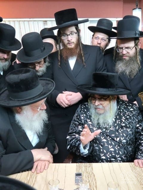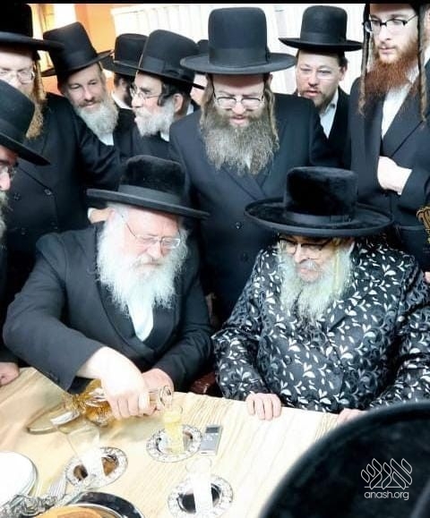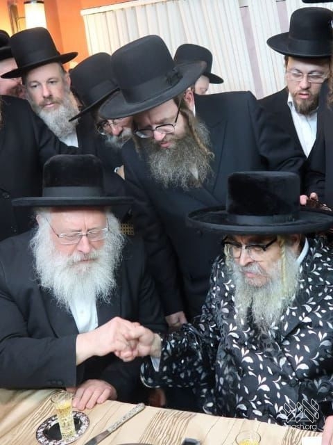 Harav Aizik Landau, Lubavitcher rov of Bnei Brak, hosts Harav Aharon Teitelbaum, Satmar Rebbe of Kiryas Yoel, who is visiting his mosdos in the city.