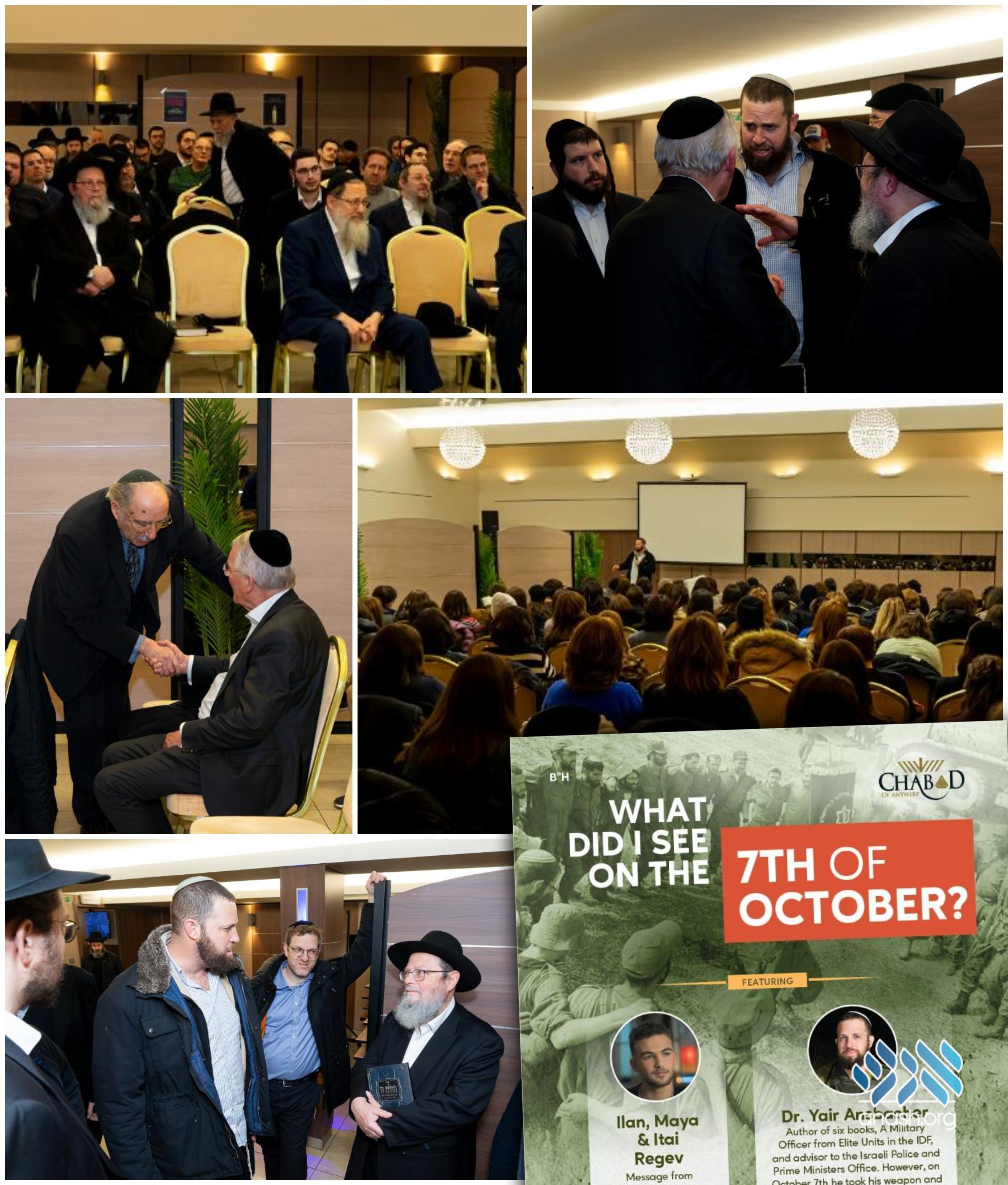 A large crowd of men and women came together at Chabad of Antwerp for a program in merit of the hostages and soldiers led by Rabbi Shabtai Slavaticki and IDF soldier Yair Ansbacher.