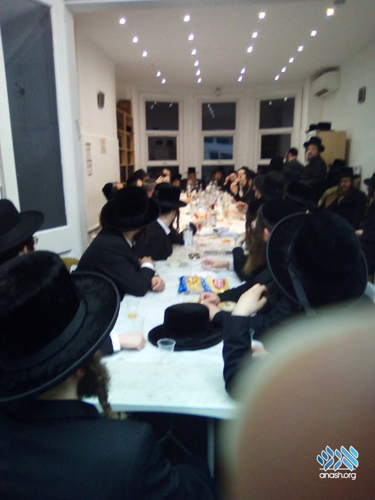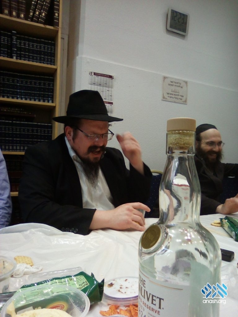 The farbrengen was arranged by Rabbi Avremel Raskin of Merkaz Letoras Hachassidus, together with Reb Elyokim Shif, who manages running the Kollel Chassidus.