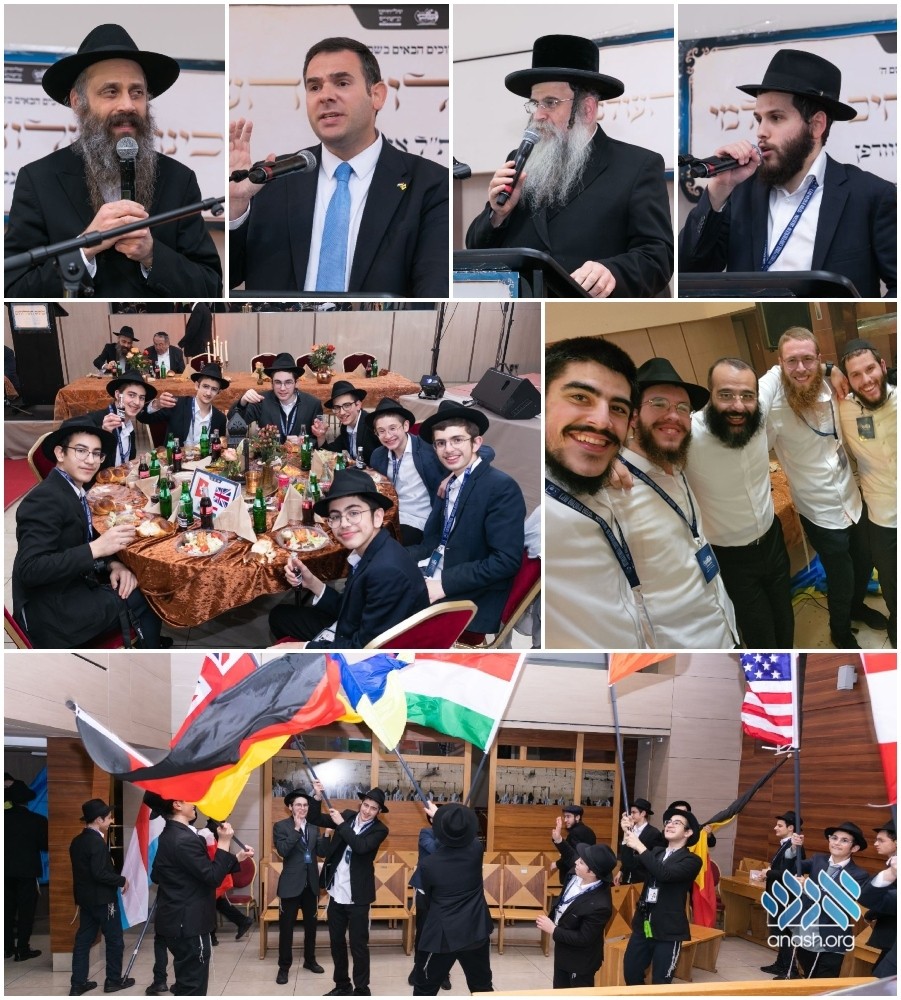 At the end of the banquet, a roll call was held. With the names of children of the shluchim studying in the yeshiva, 26 countries were read. The students got up and danced together with their friends, from France, Holland, Montenegro, Serbia, Italy, Ukraine, USA, Germany, Chile, Luxembourg. And many other countries.