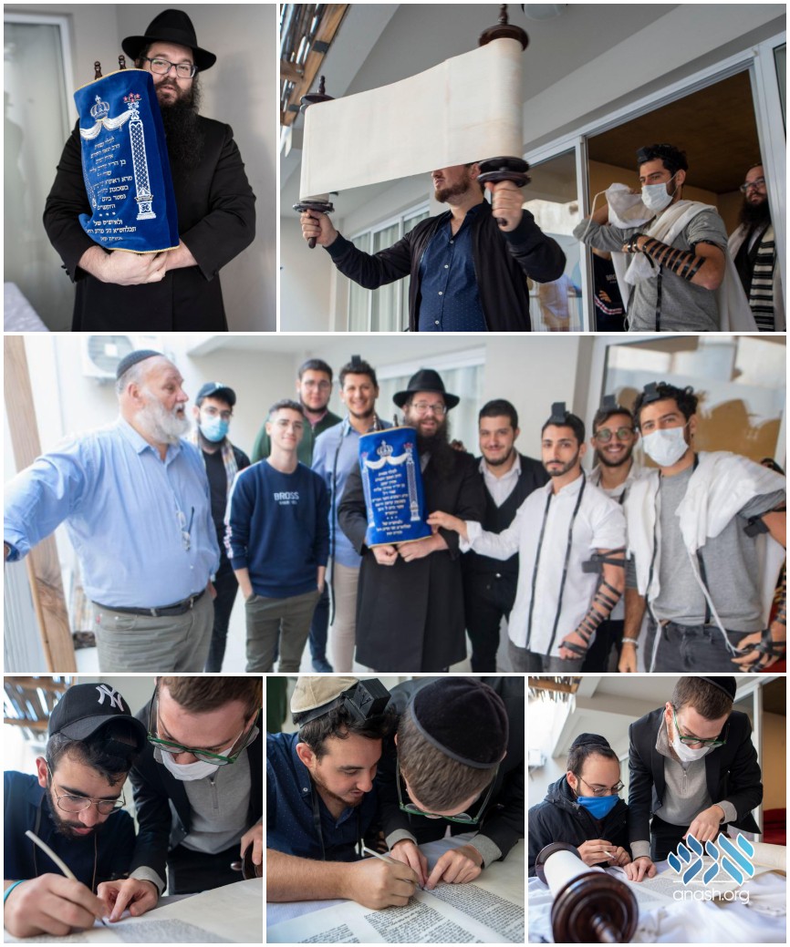 On Lag B’omer, the shul celebrated the completion of the Sefer Torah in a modest ceremony, attended by the shul members.