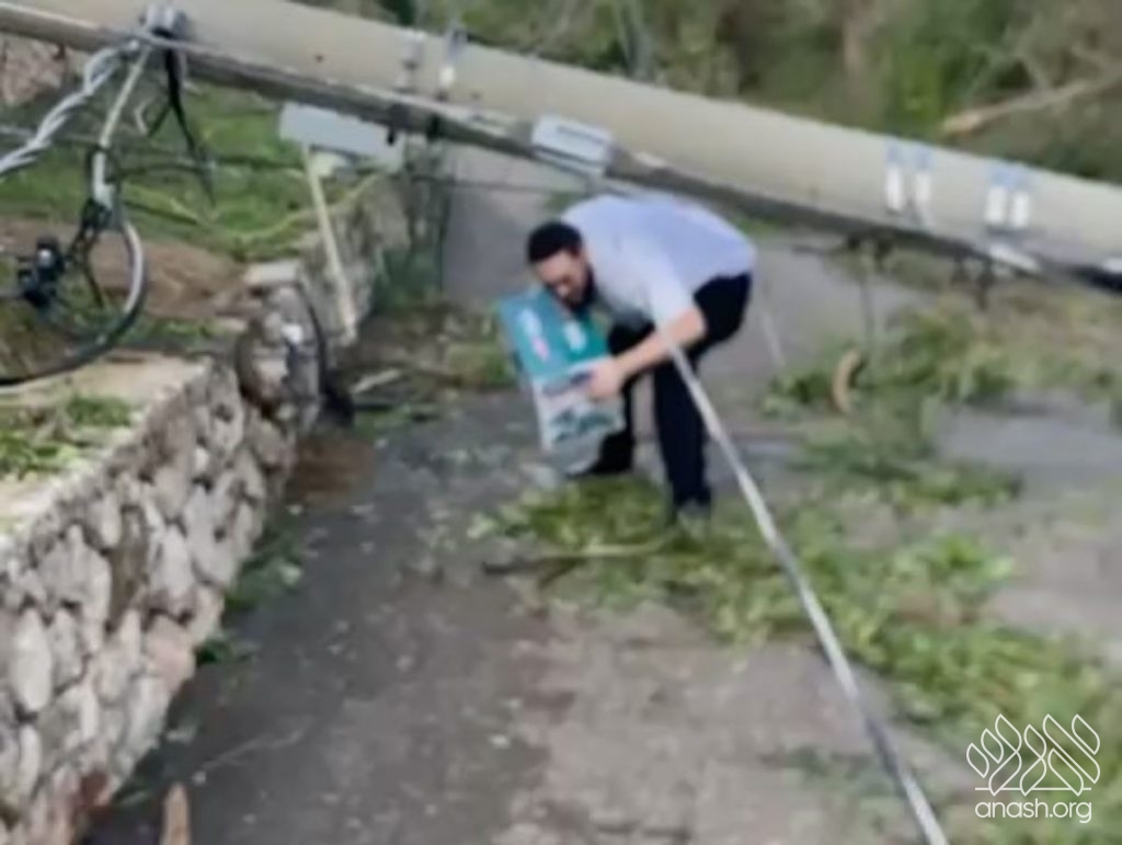 With roads blocked and vehicles damaged, Rabbi Raskin, the bochurim, and volunteers have walked miles through debris to reach residents in need. Alongside their efforts to deliver aid and assistance, they also helped Jews put on tefillin and perform mitzvos. Many were deeply moved, some brought to tears as they davened together.