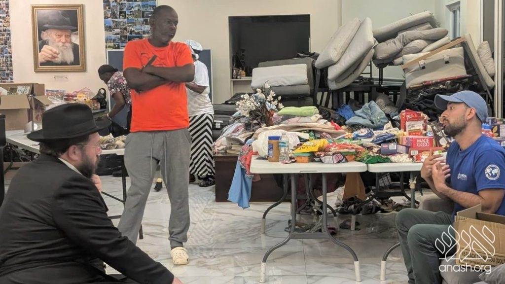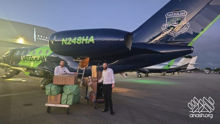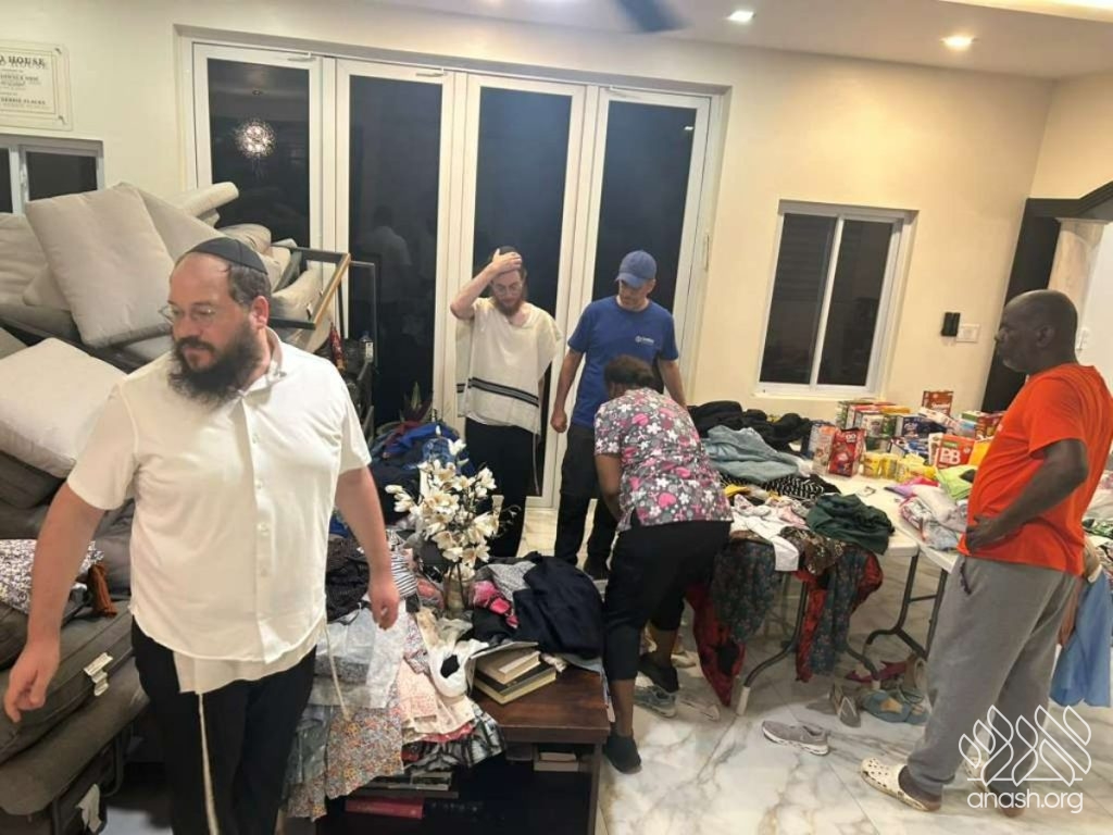 Working with Hatzolah Air, the Raskins arranged the first private plane of humanitarian aid to fly from South Florida, carrying kosher food, baby formula, canned goods, medicine, flashlights, and other critical supplies. Two bochurim, Mottel Slonim and Tzemach Shemtov, were dispatched from New York to assist with the Chabad-led relief operations on the ground, joining local volunteers in distributing supplies to isolated communities.