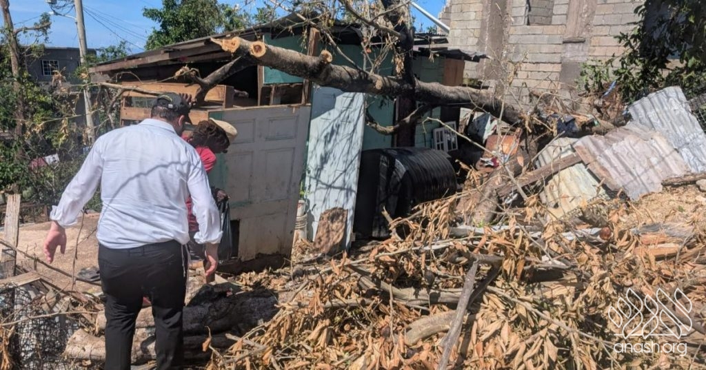 On social media, Chabad Jamaica described the situation: “Some sights were very difficult – downed trees, collapsed buildings, chaos on the roads. But other sights were beautiful – people helping one another, neighbors sharing food and power. Several tourists and locals are sheltering with us; we’ll celebrate Shabbos together.”