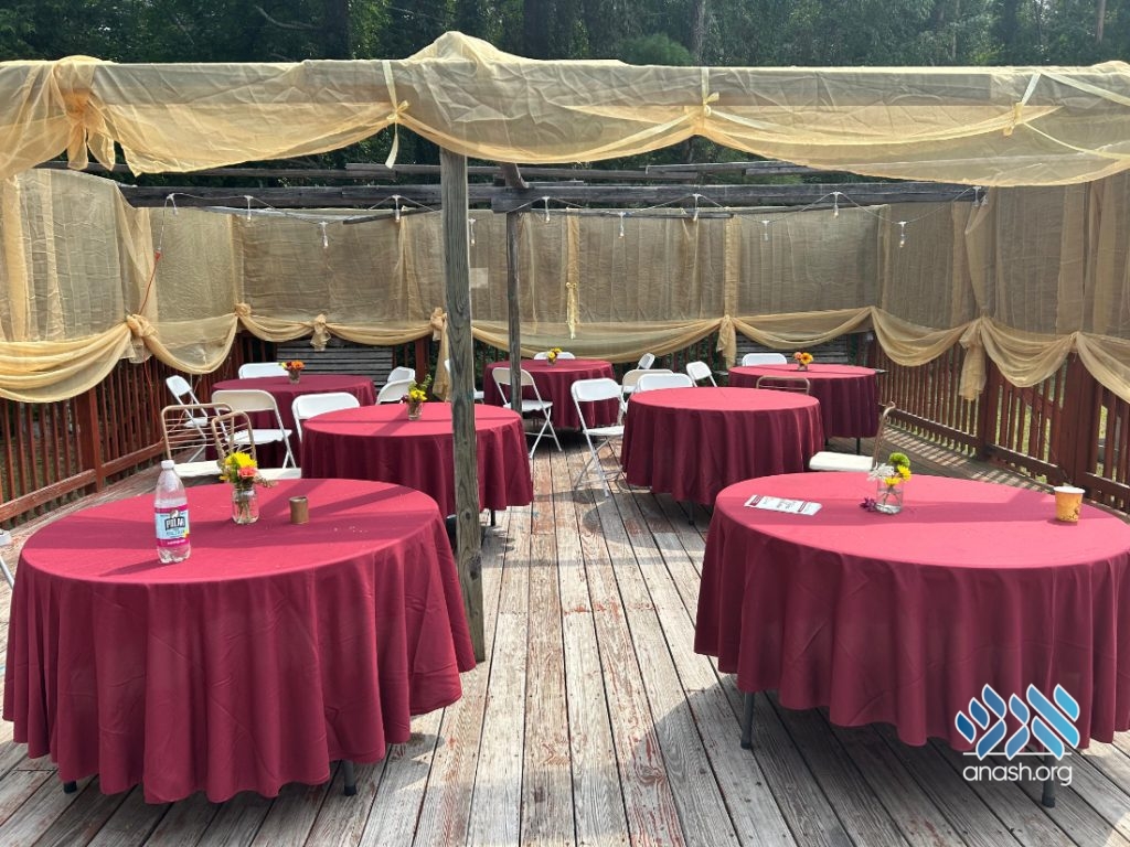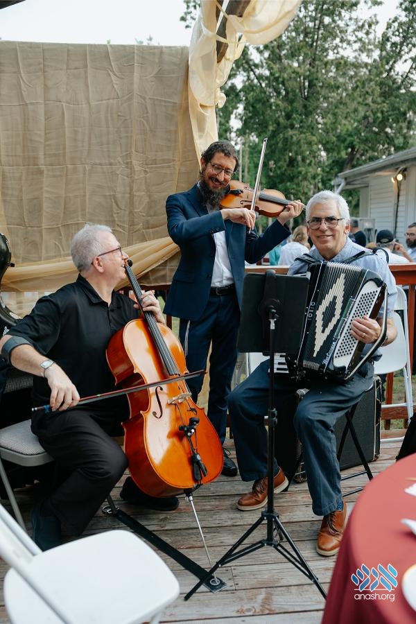 Outdoors, guests gathered on the Chabad House deck to enjoy delicious refreshments and live klezmer music, which filled the summer evening with joyful spirit.