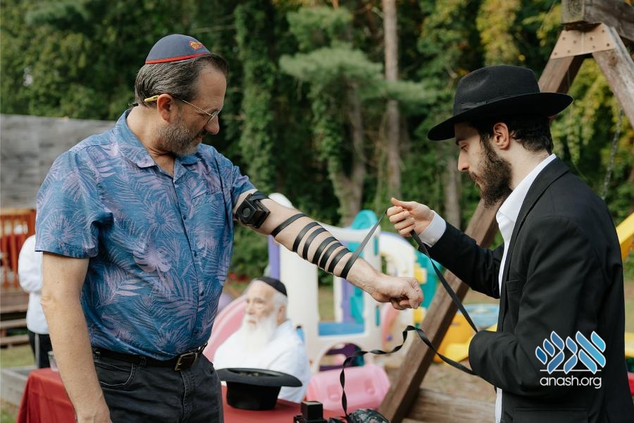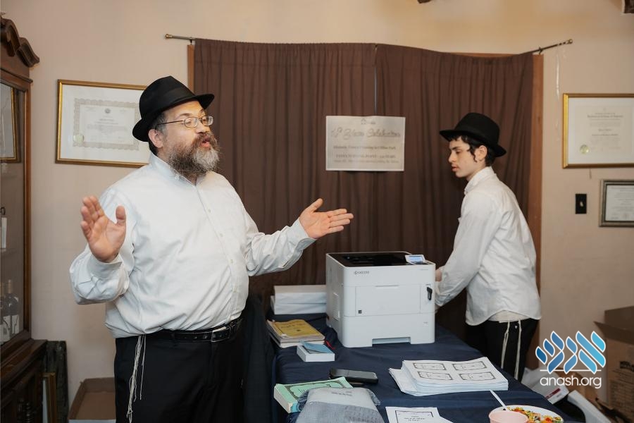 As violinist Yehoshua Sussman played stirring melodies of the Alter Rebbe, the printers got to work. Students Chaim Osdabo and Nosson Weinfeld from the Chabad yeshiva in Pomona facilitated the printing and brought chassidic energy with tefillin, and spirited farbrengen.