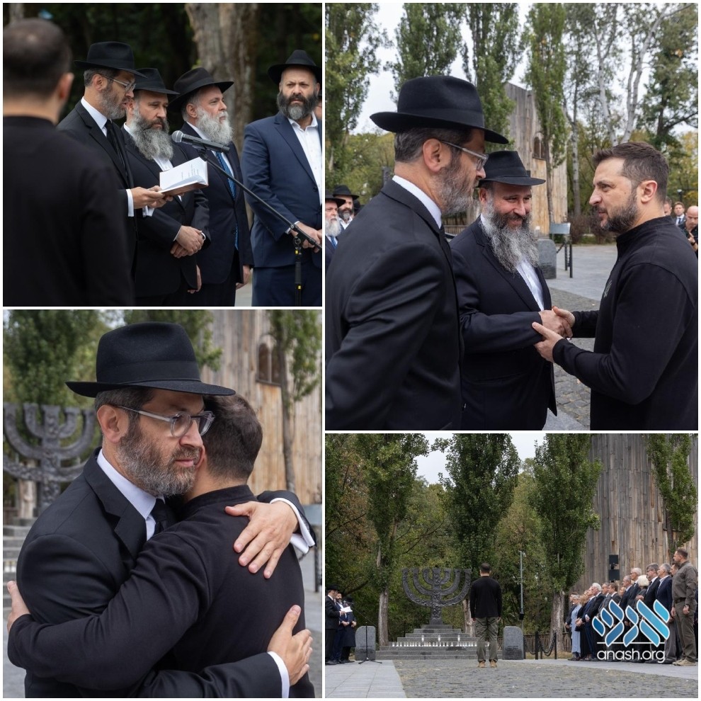 At a memorial ceremony with shluchim at Babi Yar, Ukrainian President Volodymyr Zelensky highlighted the struggle against an “axis of evil,” describing it as “a war of the West fighting for its life against a bloodthirsty coalition bent on wars and conquering territories of its rivals, at the cost of lives.”