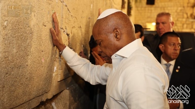 For the second time, and toward the end of his term, outgoing New York City Mayor Eric Adams visited the Kosel, and expressed his unwavering support for Eretz Yisroel, the Jewish people, and for his fight against antisemitism.
