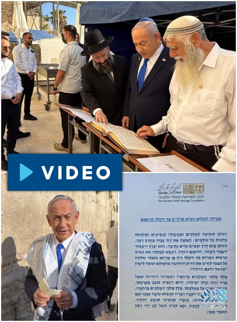 The prime minister also recited a special prayer at the Kosel for the wellbeing and success of President Trump. The prayer asked that Hashem bless and protect him, grant him strength and shield him from all harm. It noted Trump’s role in standing up to evil and asked that he be granted wisdom to continue leading with strength on behalf of the Jewish people and the entire world.