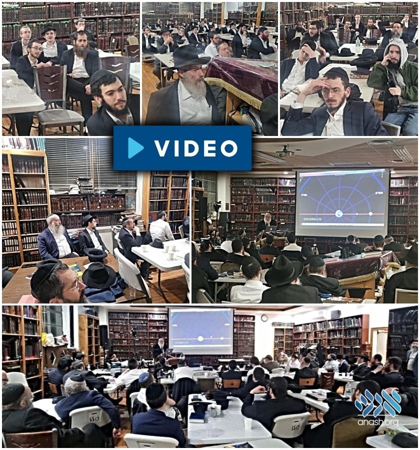 Anash and bochurim gathered in the Crown Heights Kolel for a unique visual presentation the Rambam’s Kiddush Hachodesh, now being learned in the three perokim cycle of Rambam. Watch a replay.