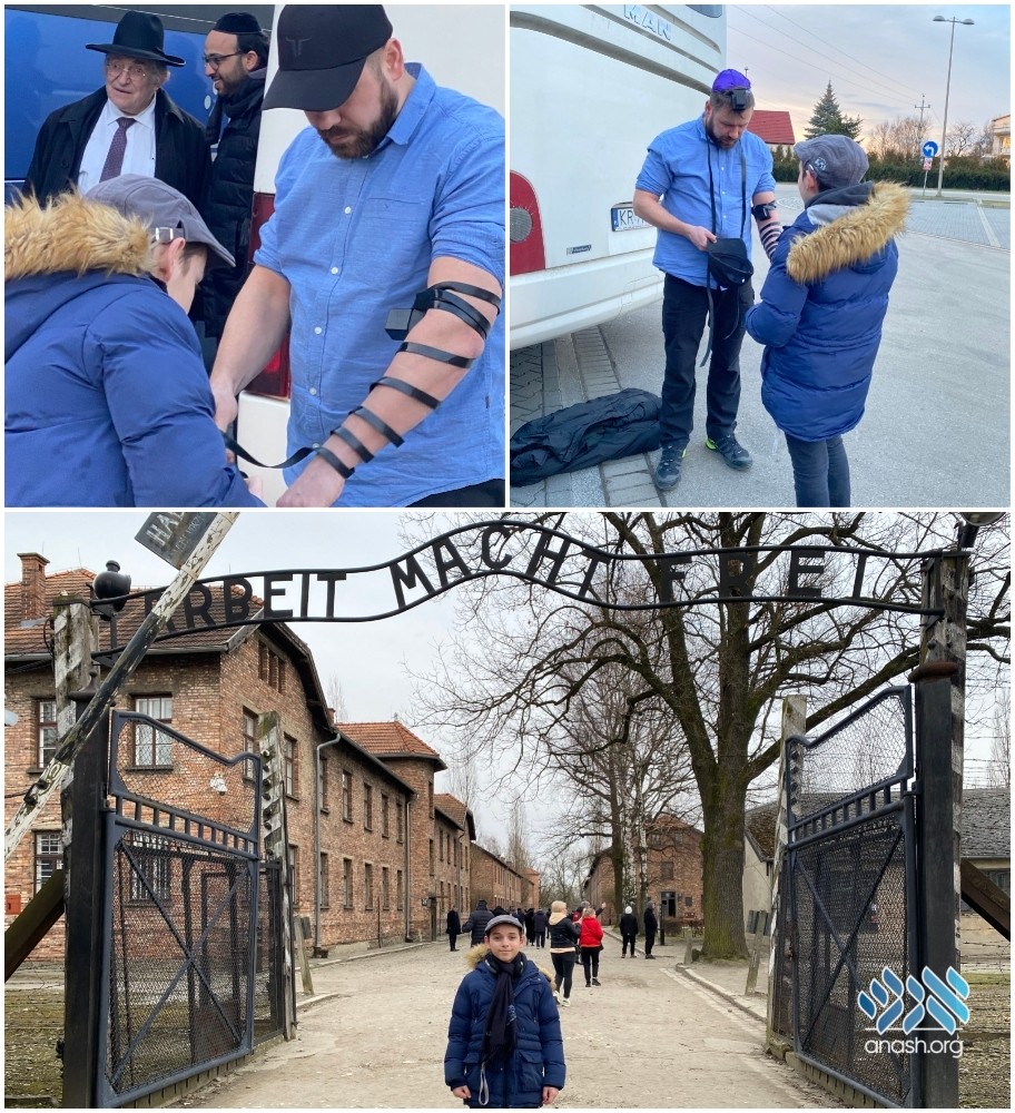 At their next stop before entering Birkenau, when the group stopped for mincha, Shmueli Cohen of Crown Heights sprung to action and assisted Ariel to put on Tefillin.