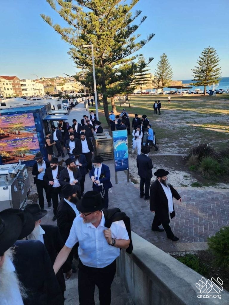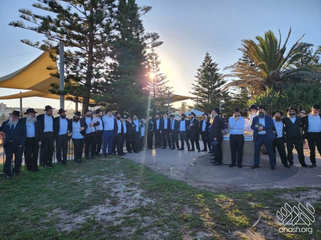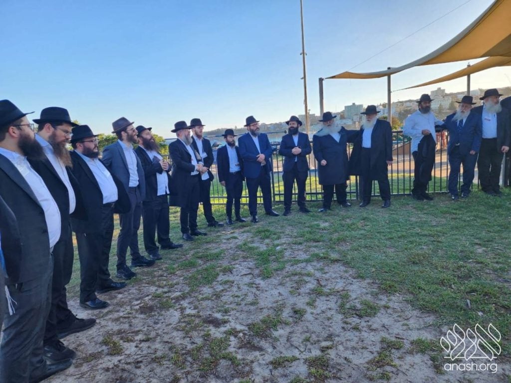 The highlight of the convention was the tahalucha to Bondi Beach, where the large group gathered at the site of the tragic attack, near the now-infamous bridge, to recite Tehillim for the victims and for the success of all Shluchim.