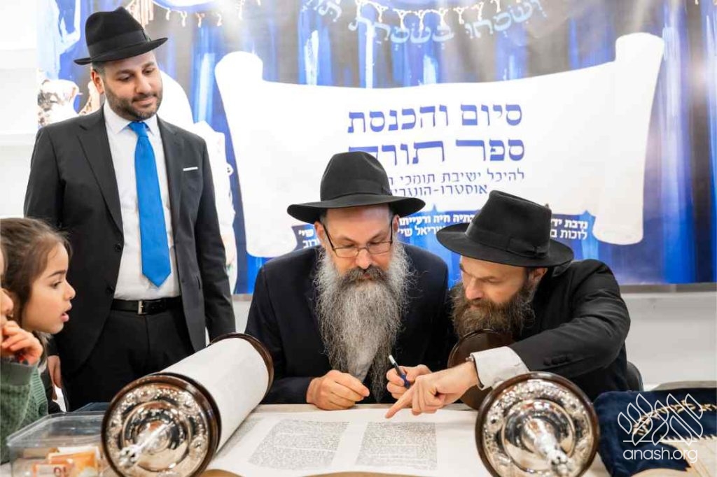 The timing of the event also involved remarkable providence. “We were looking for an auspicious date and settled on Rosh Chodesh Shevat,” the Rosh Yeshiva explained. “Shortly after, I came across a letter from the Rebbe regarding the completion of a Sefer Torah. The Rebbe explicitly mentions three dates, the first being Rosh Chodesh Shevat, citing the possuk in Devarim that on the ‘eleventh month, on the first of the month… Moshe began explaining this Torah.'”
